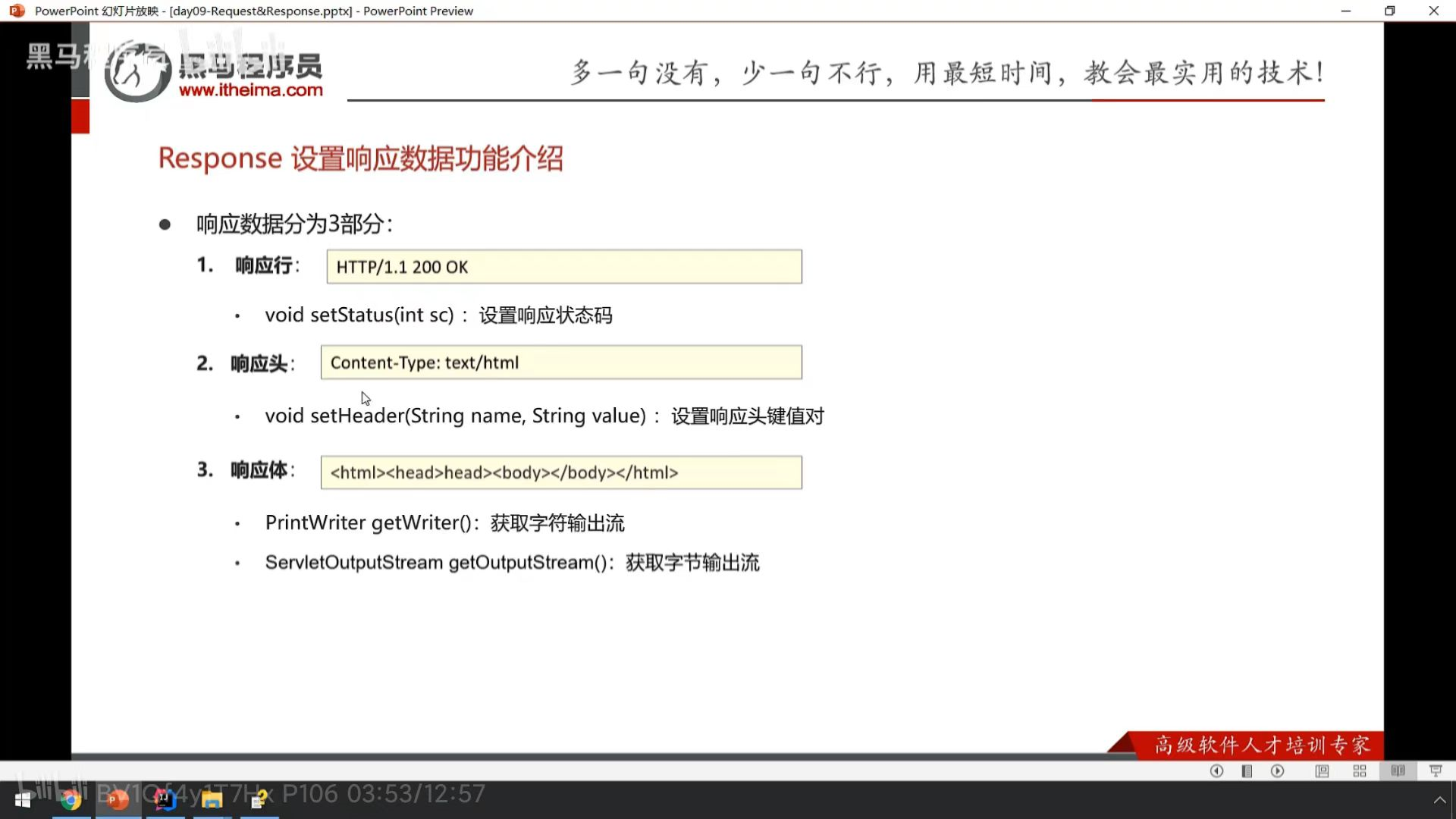 字符输出流,主要用于文本信息的响应,先设置响应数据的格式,流的编码,防止出现中文乱码:response.setContentType("text/html;charset=utf-8");