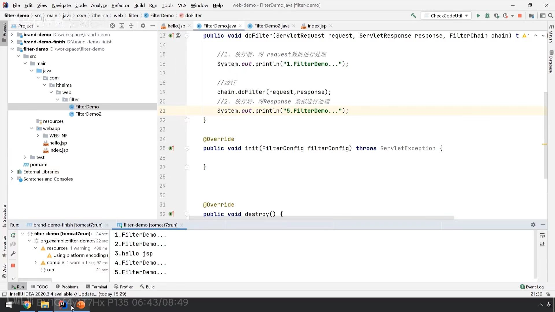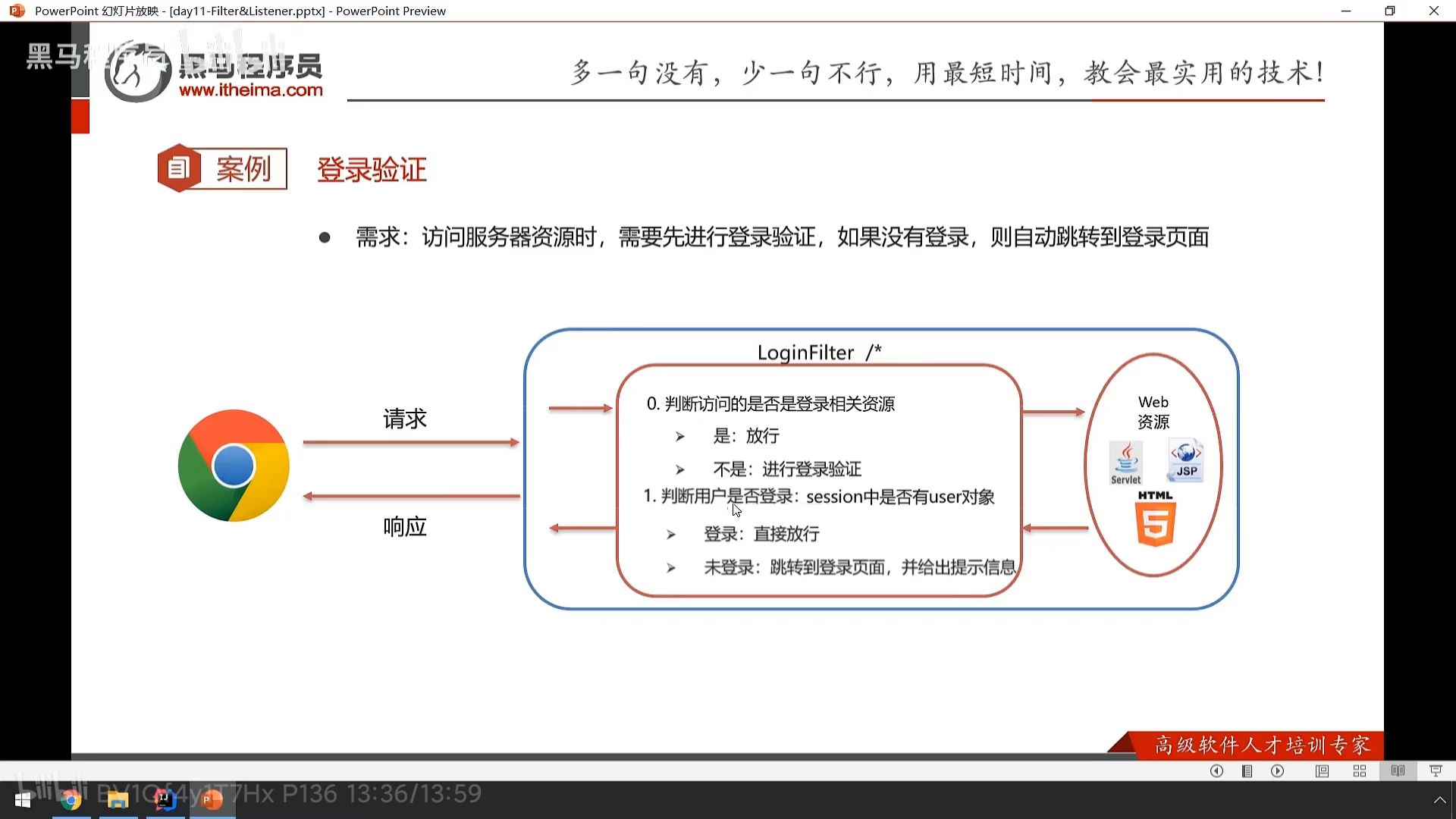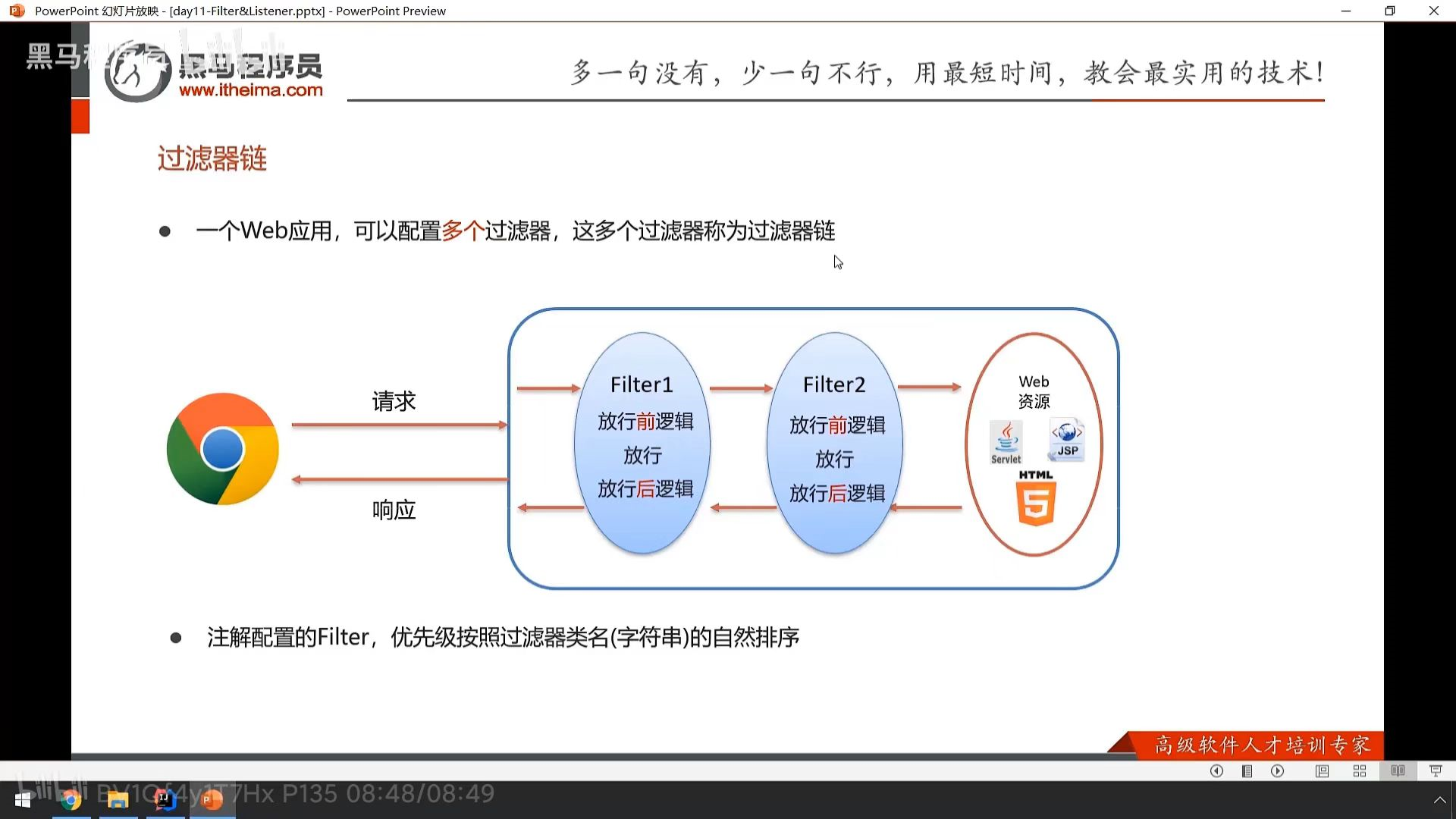 Filter是过滤器,就是在浏览器发送请求给服务器访问服务器资源时,需要先经过服务器中的filter过滤器,filter放行了,请求才能到达资源哪里,常用于权限设置,比如要查看某个数据库中的表的内容时,需要先在过滤器中判断他是否登录了