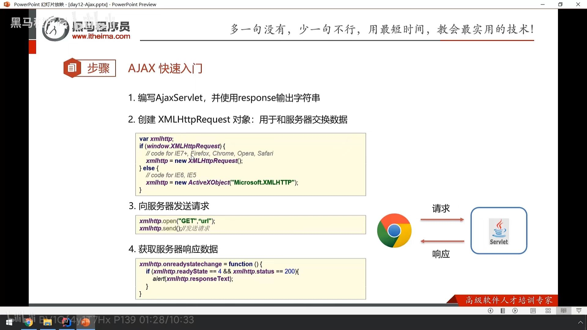 AJAX:就是负责把浏览器和服务器传输的东西,AJAX可以给服务器发送请求,获得响应,