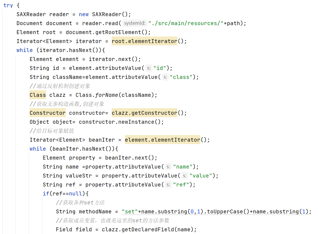 这个ioc容器实现的底层原理,就是通过解析这个xml文件,然后通过反射获取里面类,获取方法。获取变量。