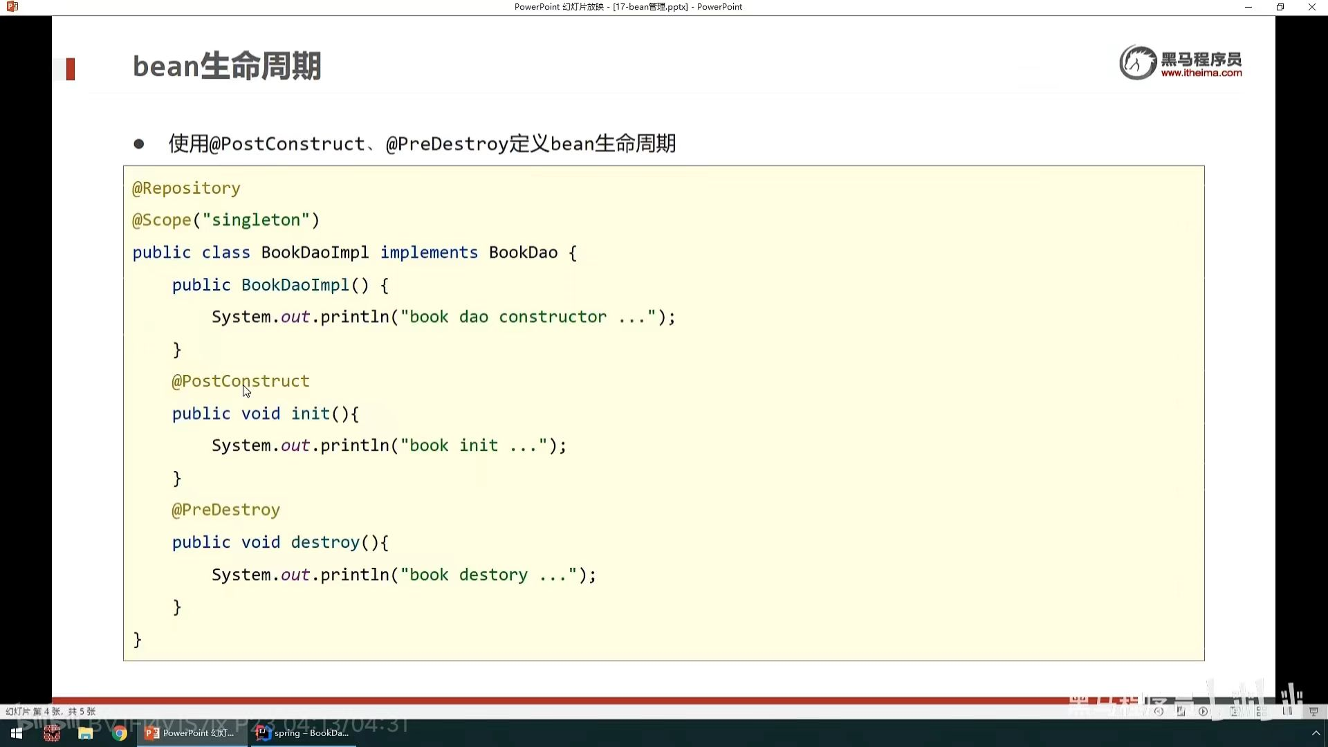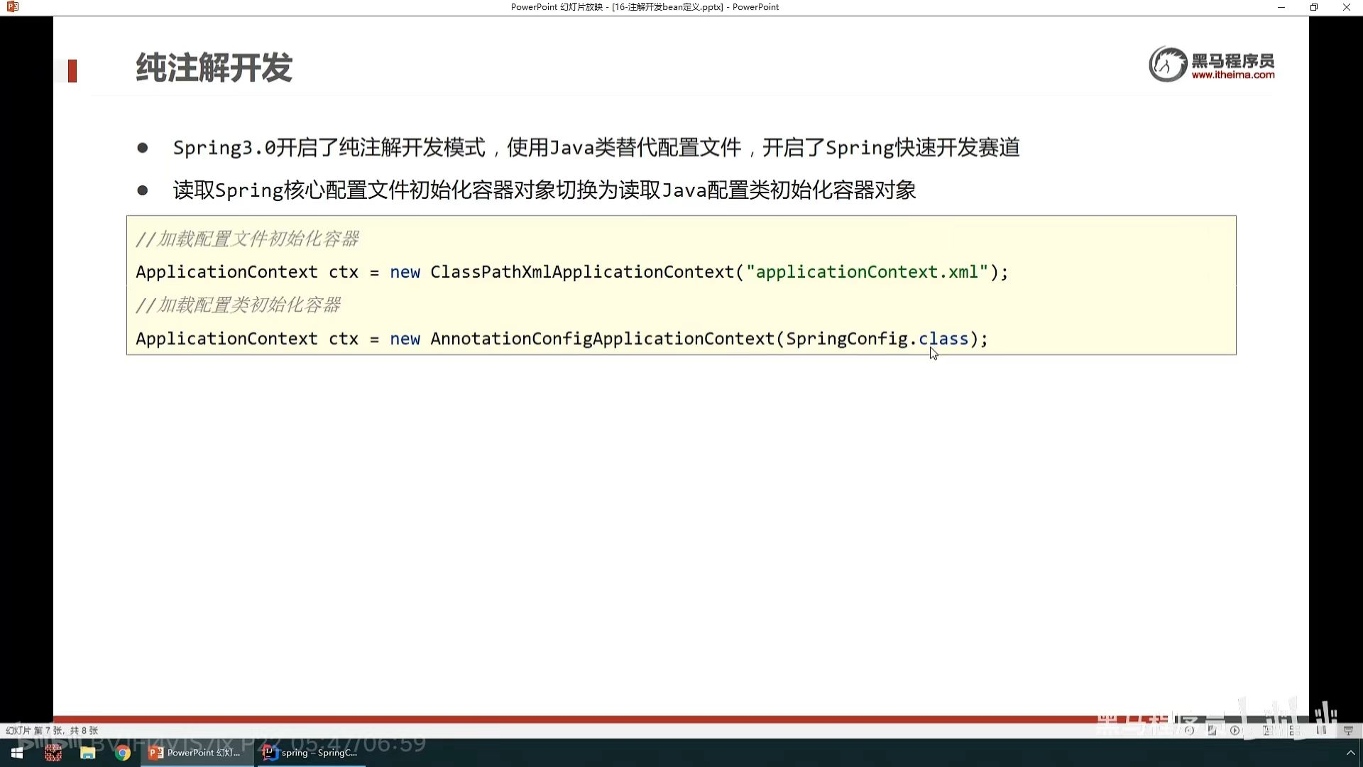 Spring3.0开启了纯注解开发,纯注解开发就是编写一个java类来替换配置文件,所以在后面的类中,获取bean的方法也变了。
