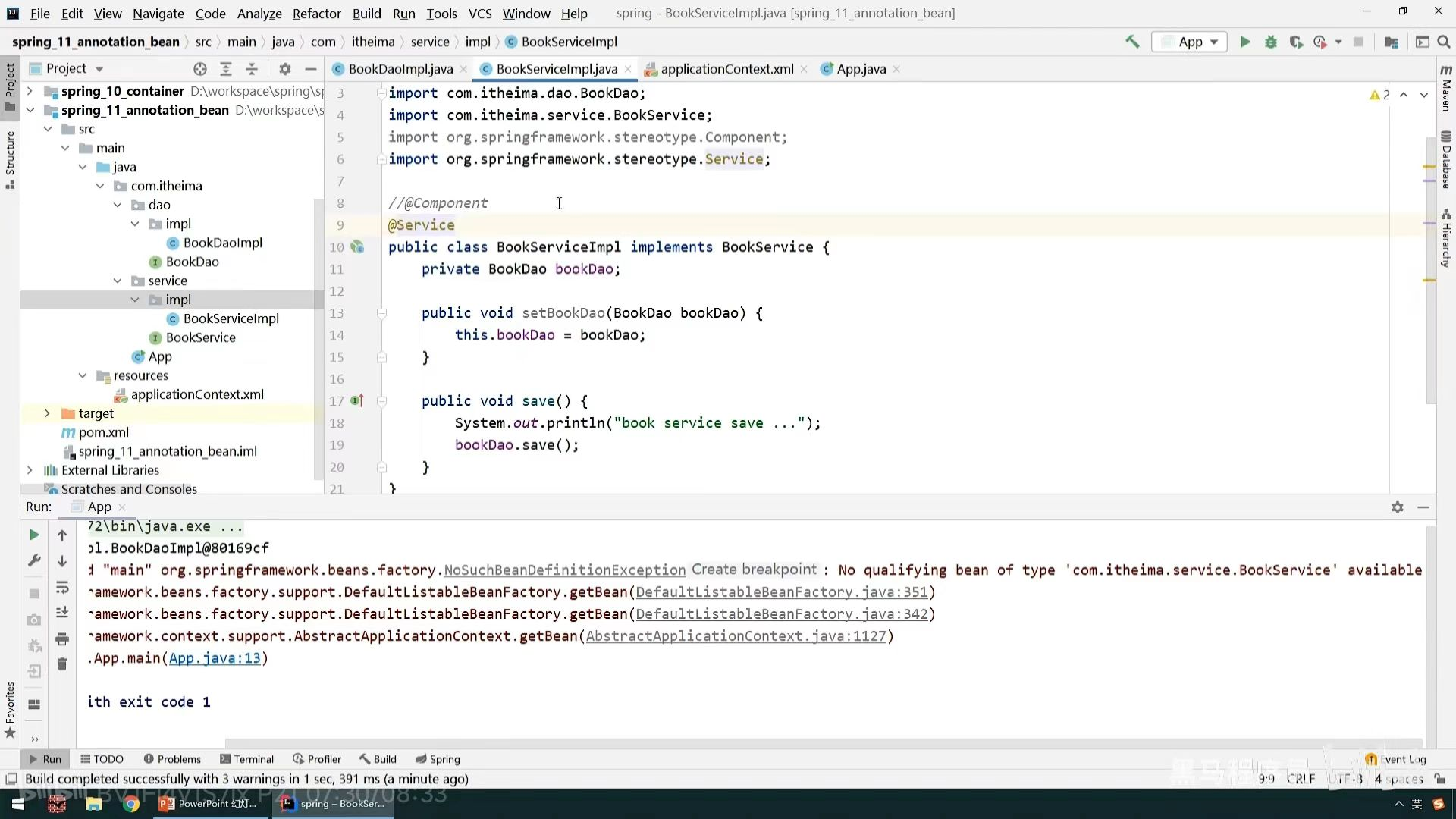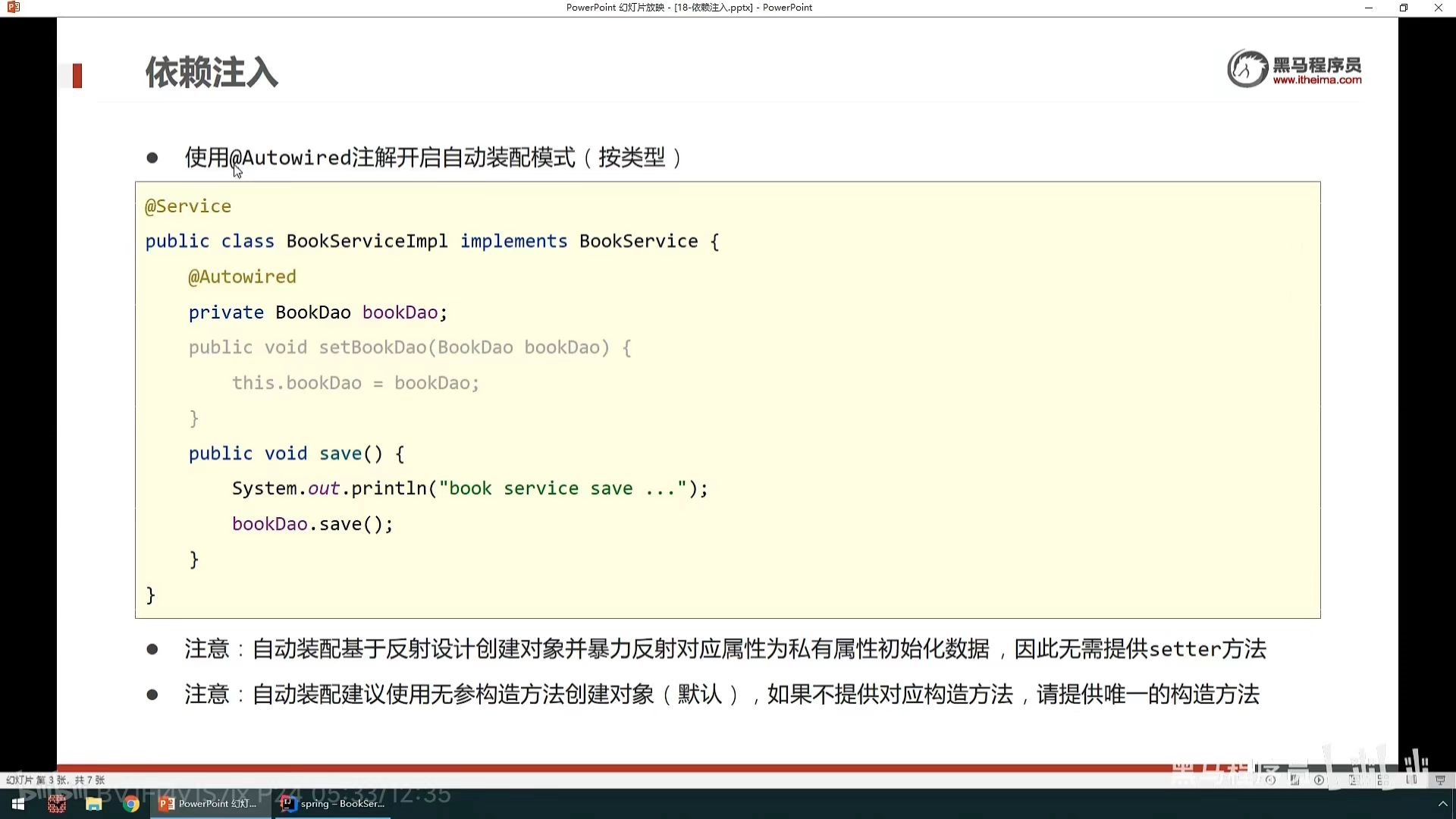 注解开发,当需要 用到其他的bean党的对象,也就是需要依赖注入的时候,就要使用@Autowired注解来完成自动装配,不在需要用那个setter注入或者构造器注入