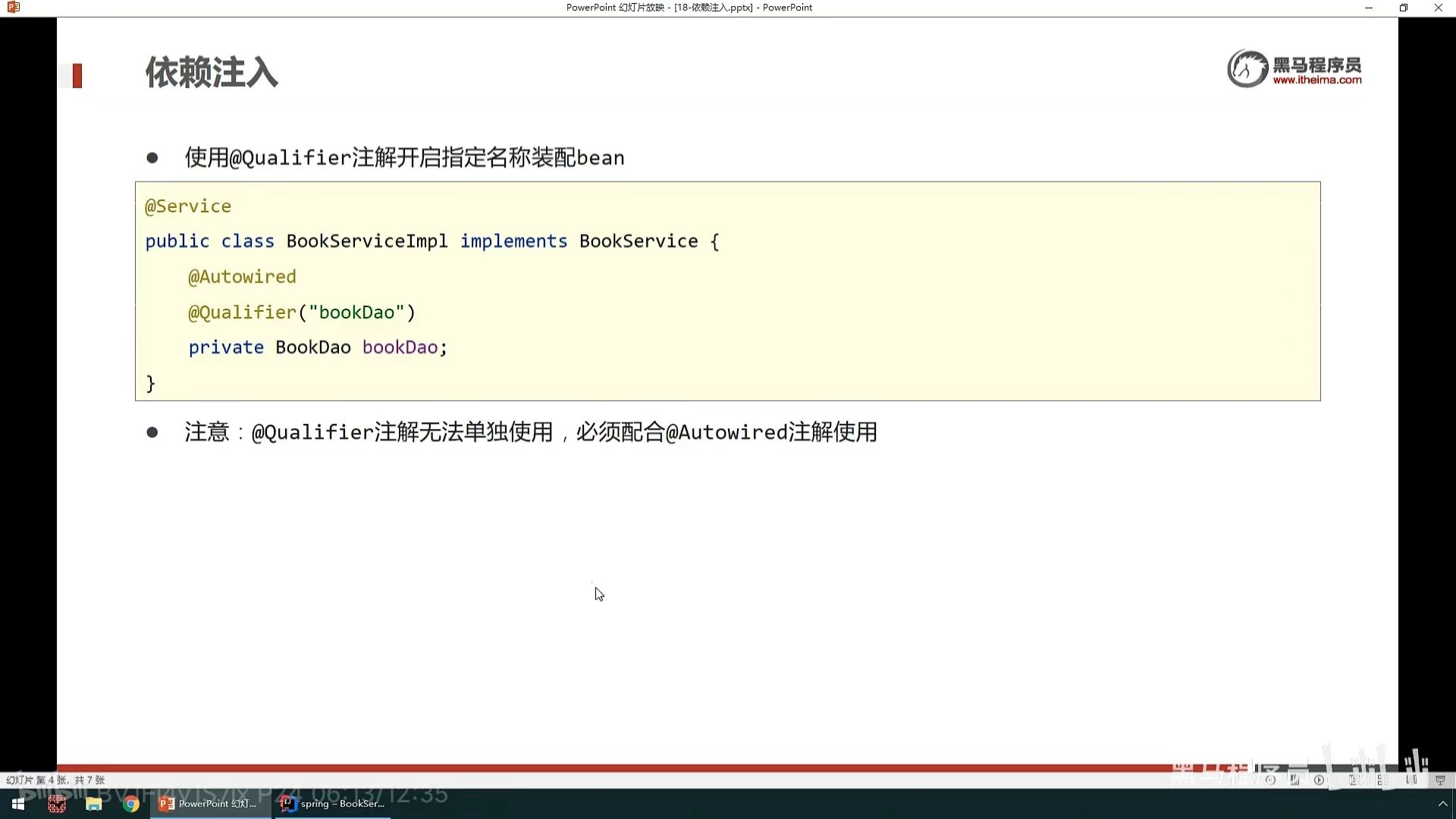 使用@Qualifier注解来指定那个注入的类的名称,因为有时候同一种类可能有多,这时候就不要分辨是哪个类,需要用这个注解指定名称,