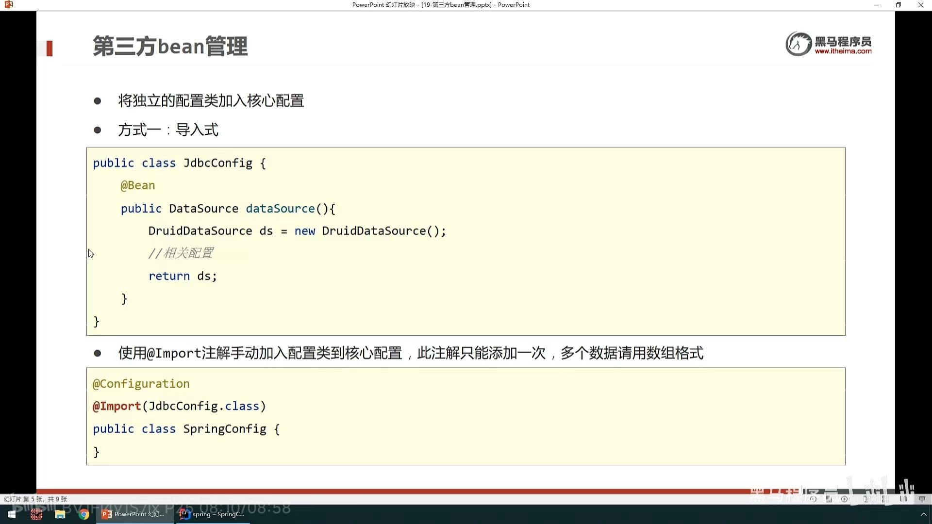 然后再去那个Springconfig类中使用@import注解把上面那个配置类加载到这个Springconfig核心配置文件中