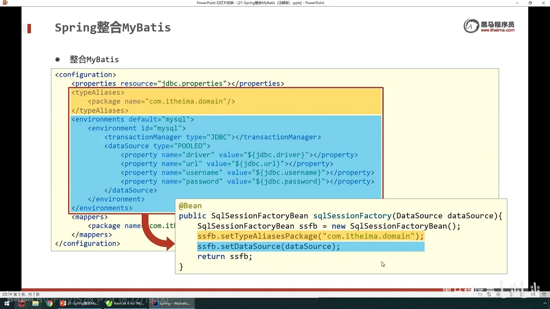 因为mybatis和那个德鲁伊包一样,是属于第三方bean,所以整合mybatis就是Spring的管理第三方bean。我们之前使用mybatis,是把mybatis的一些配置信息,初始化信息,映射配置信息,