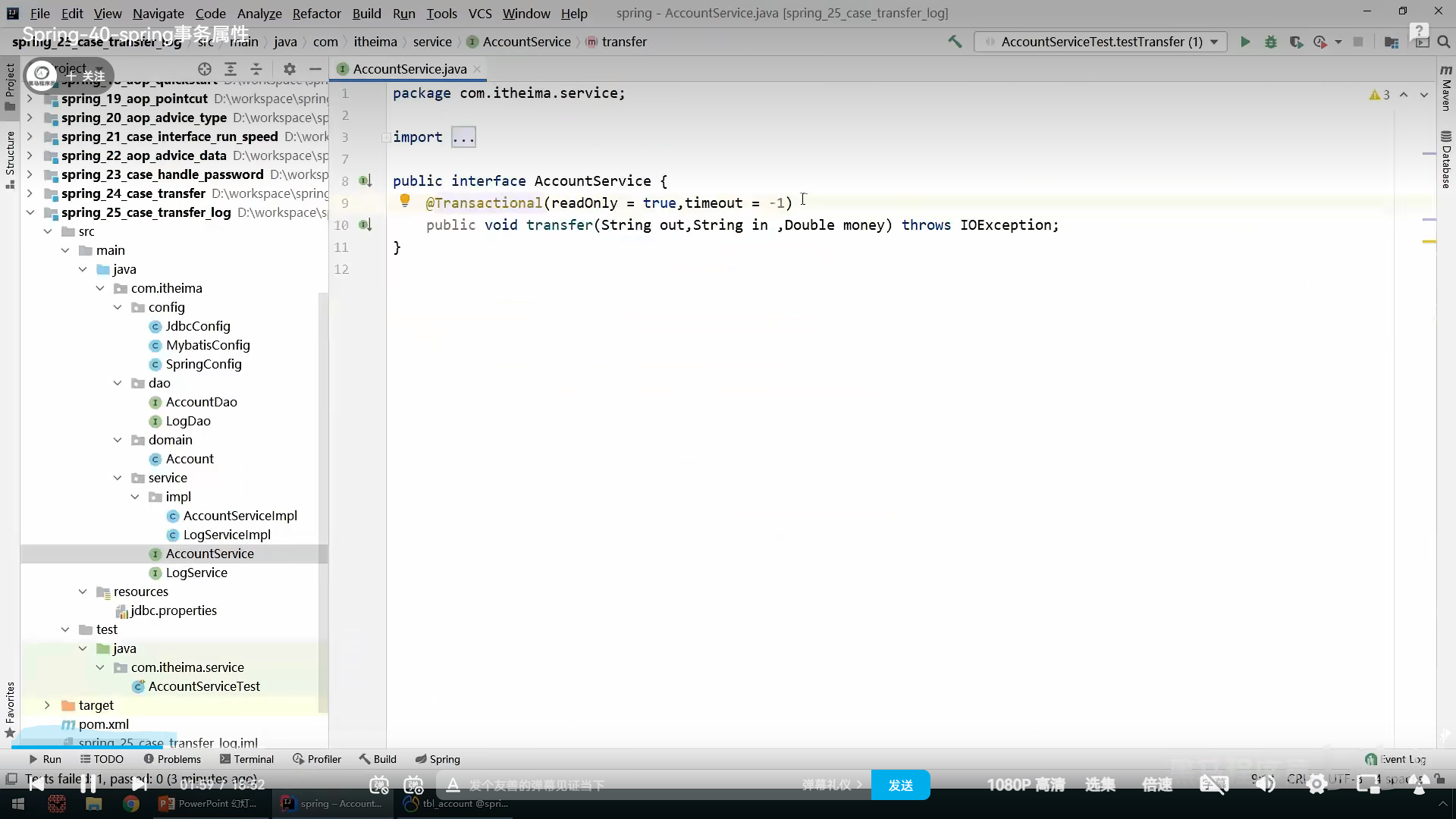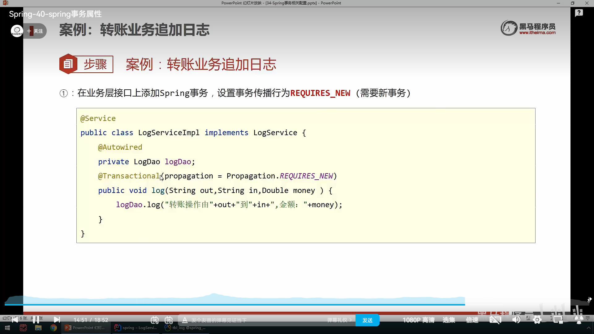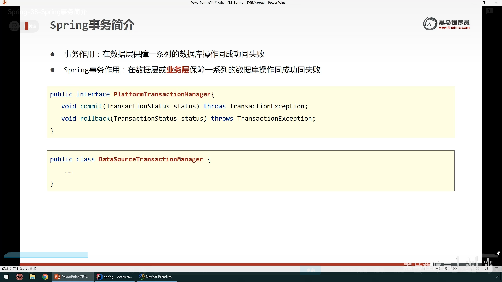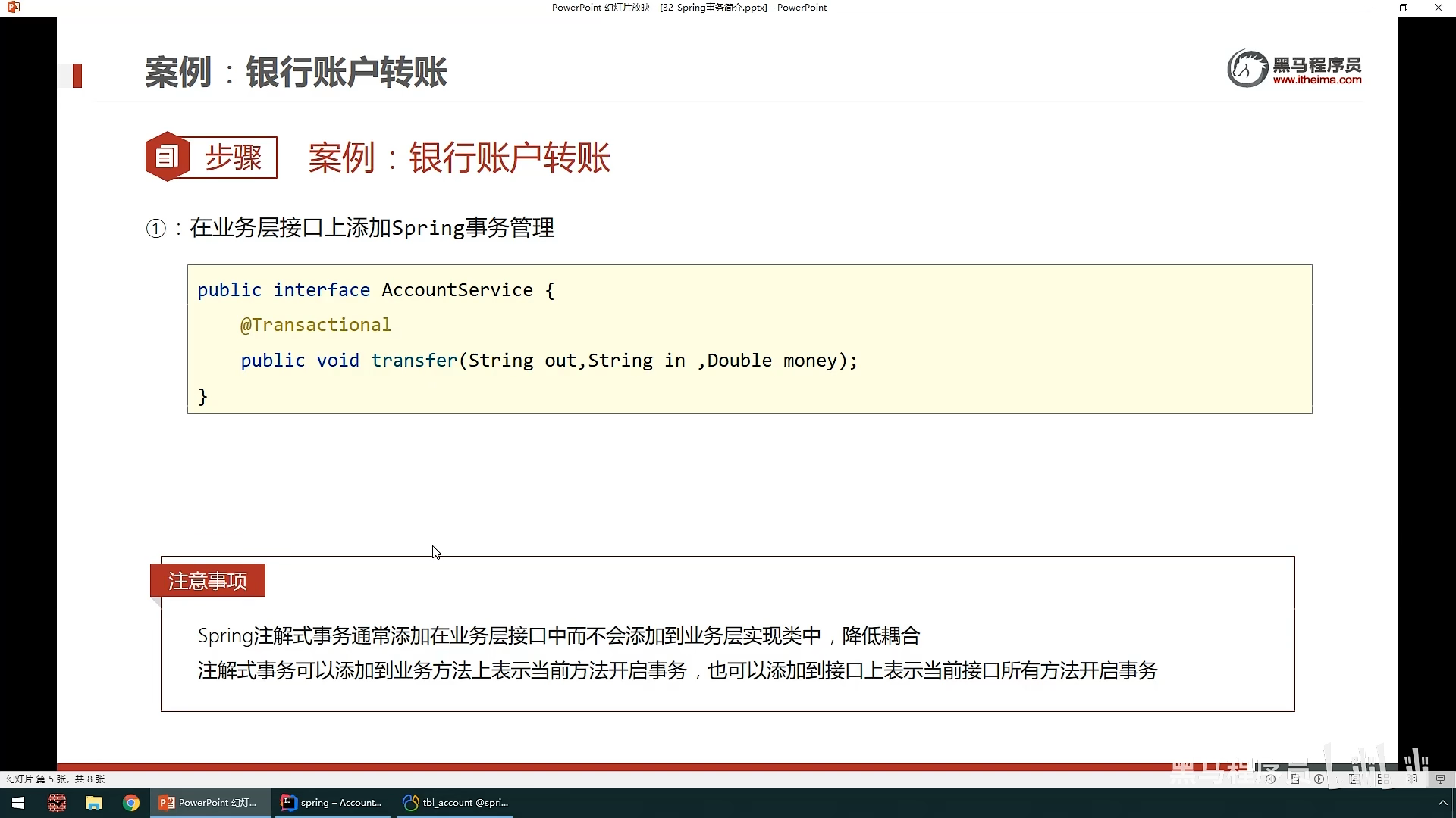 首先在业务层接口添加Spring事务管理注释:@Transation