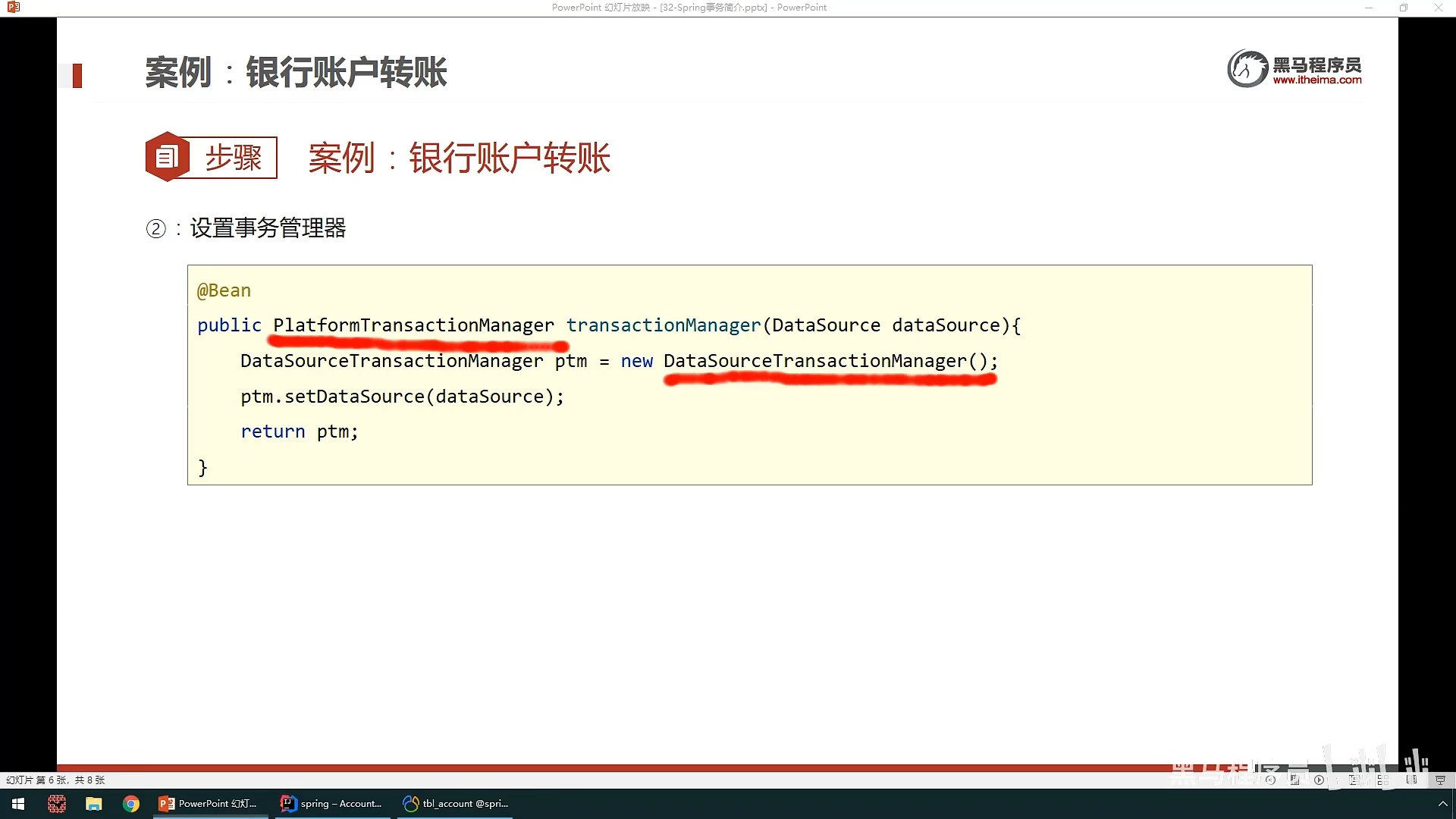 然后设置事务管理器:注意这里这个DataSource对象要和mybatis中的DataSource对象一样