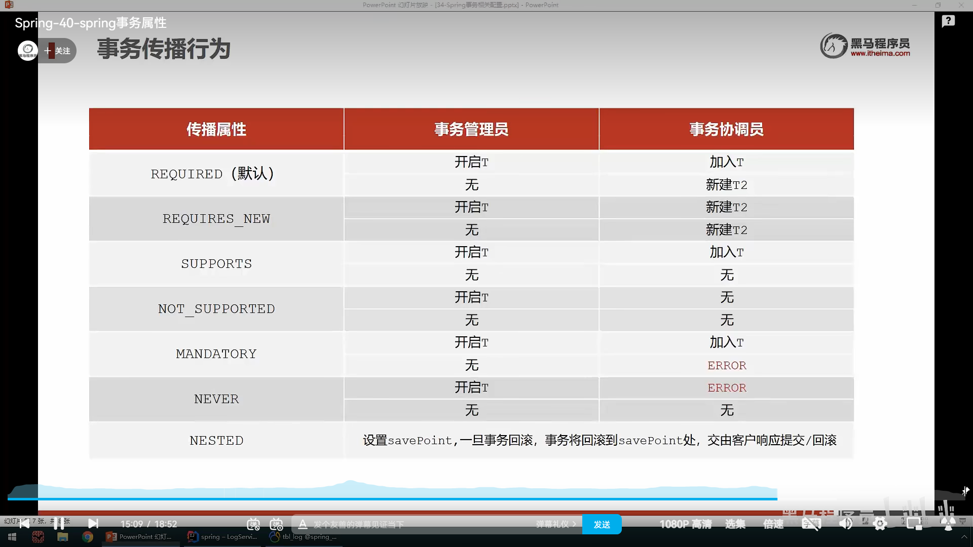 简单来说就是当事务管理员开启事务时,事务协调员选择加入或者不加入事务。怎么选择呢?那就是通过设置@Transaltion中的propagtion来完成。