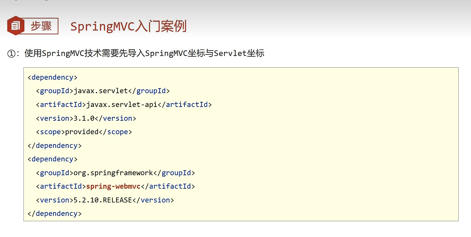 创建SpringMvc主要有三步:先导入一下依赖的jar包(tomcat服务器的包也需要导入)