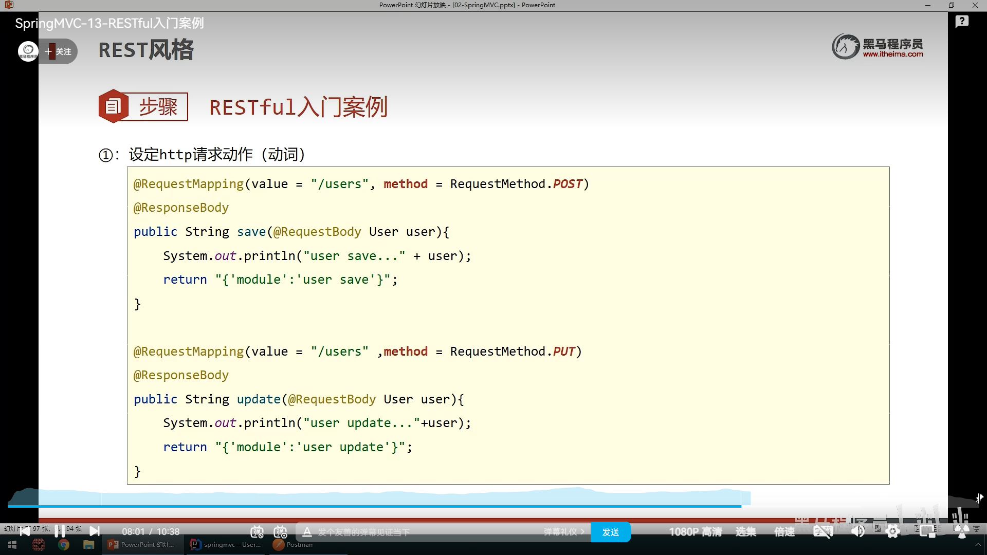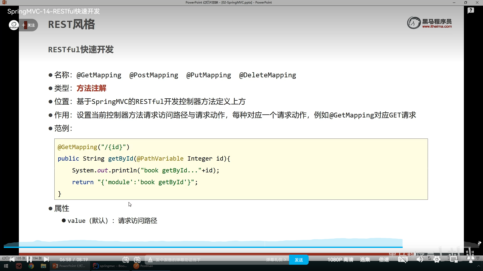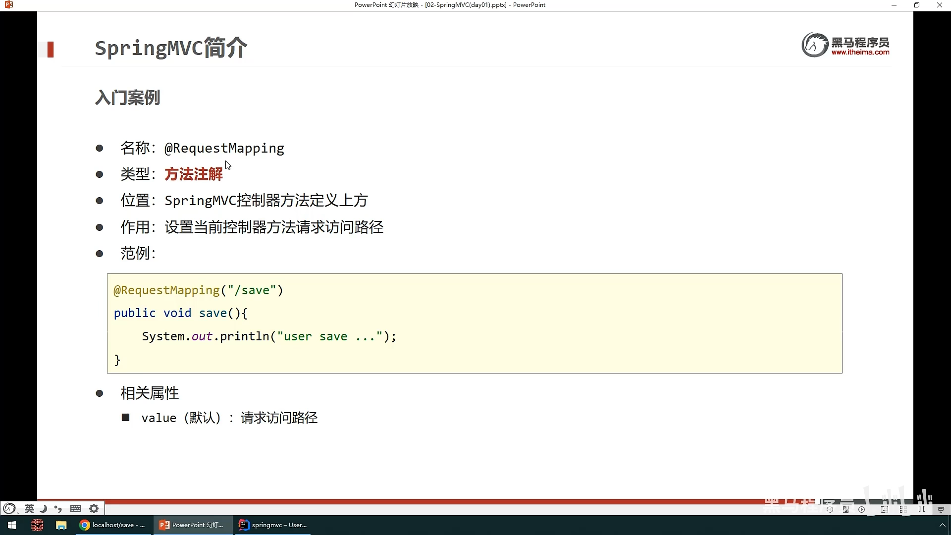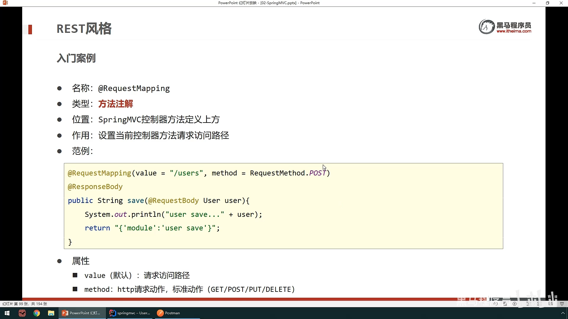 具体在方法中的使用,是在@RequestMapping中定义value来设置路径,method来设置请求方式