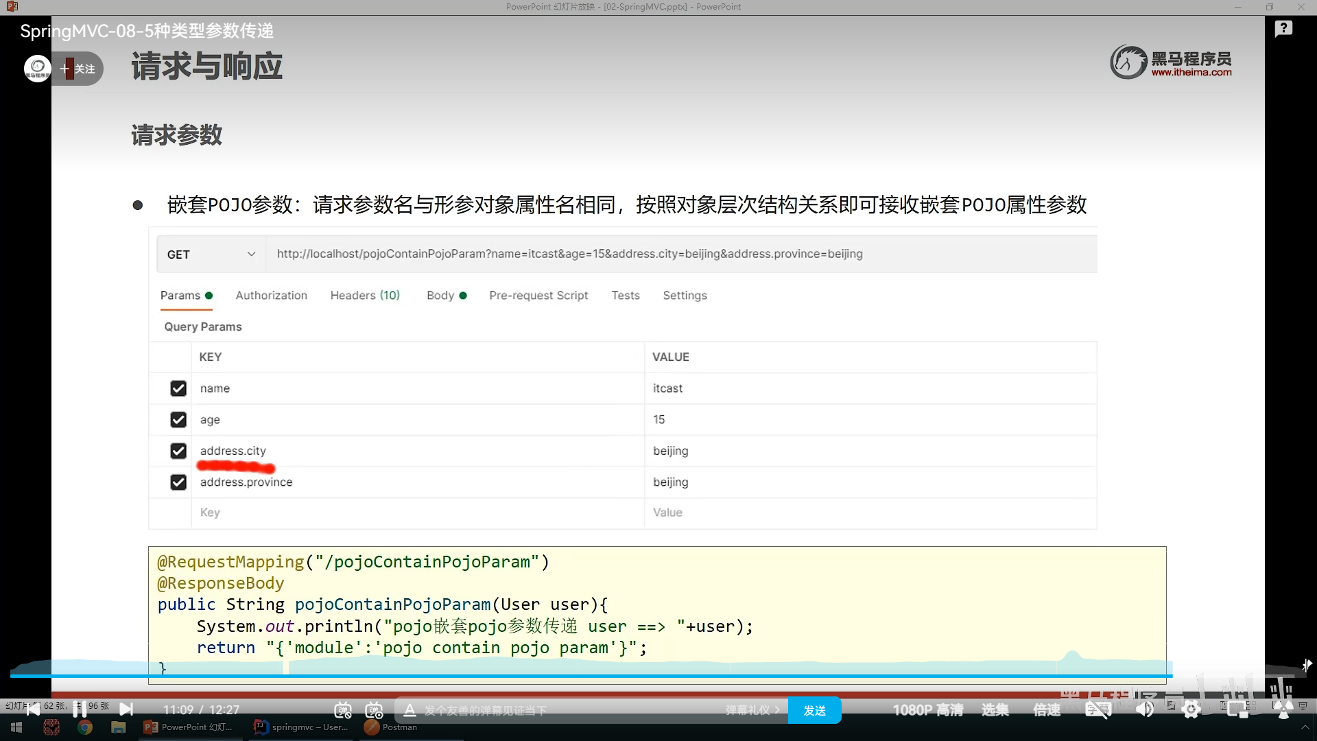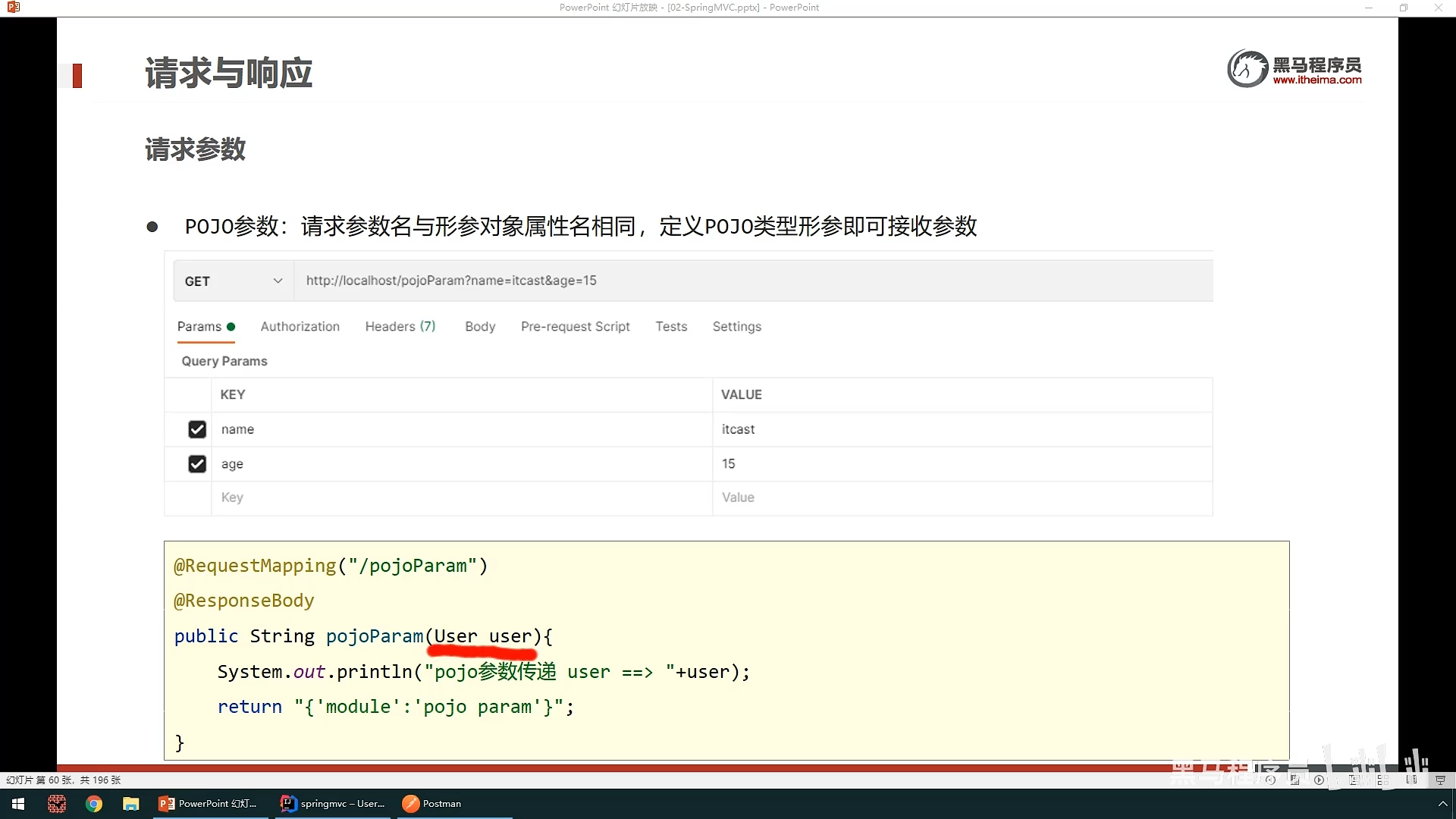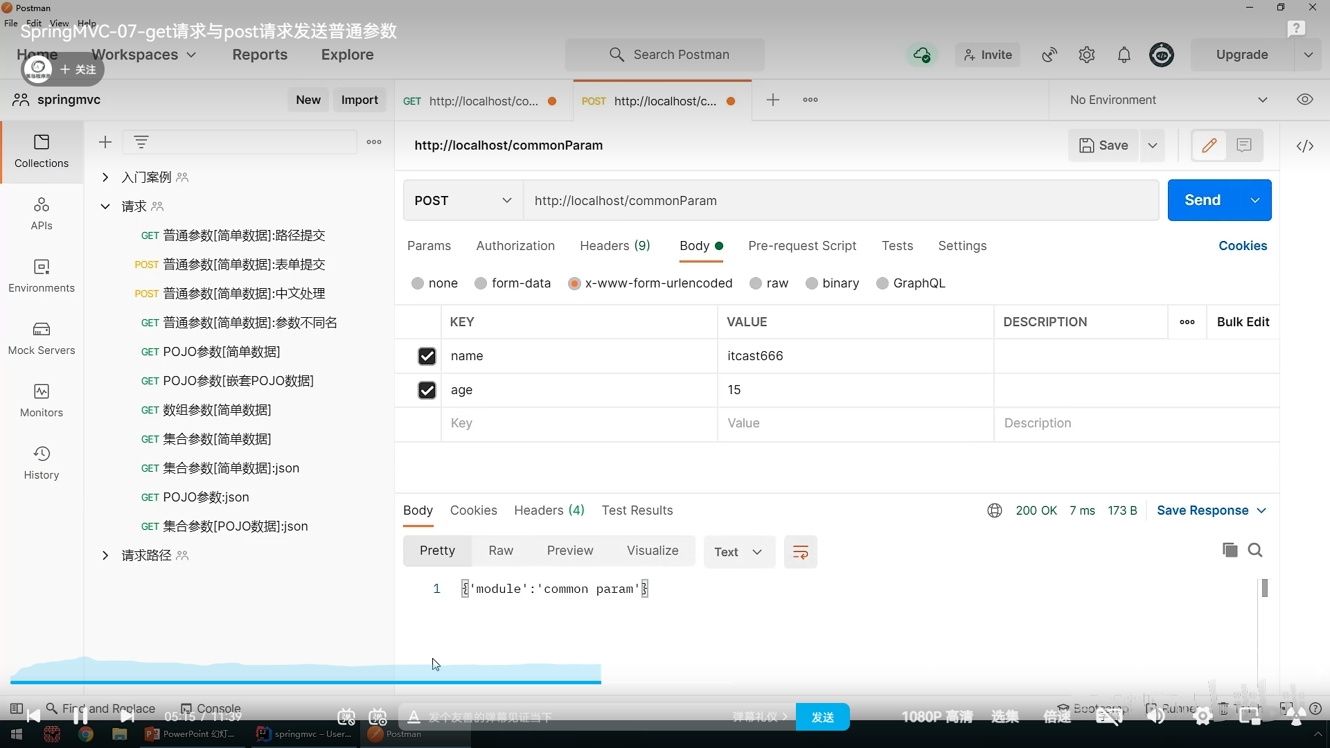 之后就是请求参数的传递,其中分为简单参数和json参数,后面大部分用的是json来传递参数,我们先说简单参数的传递,简单参数分为普通参数,数组参数,pojo(实体类)参数,集合参数,