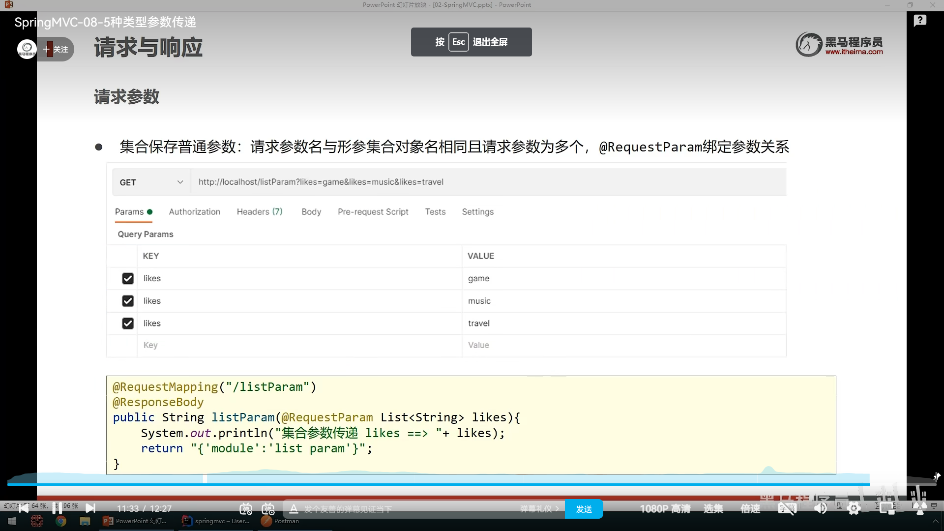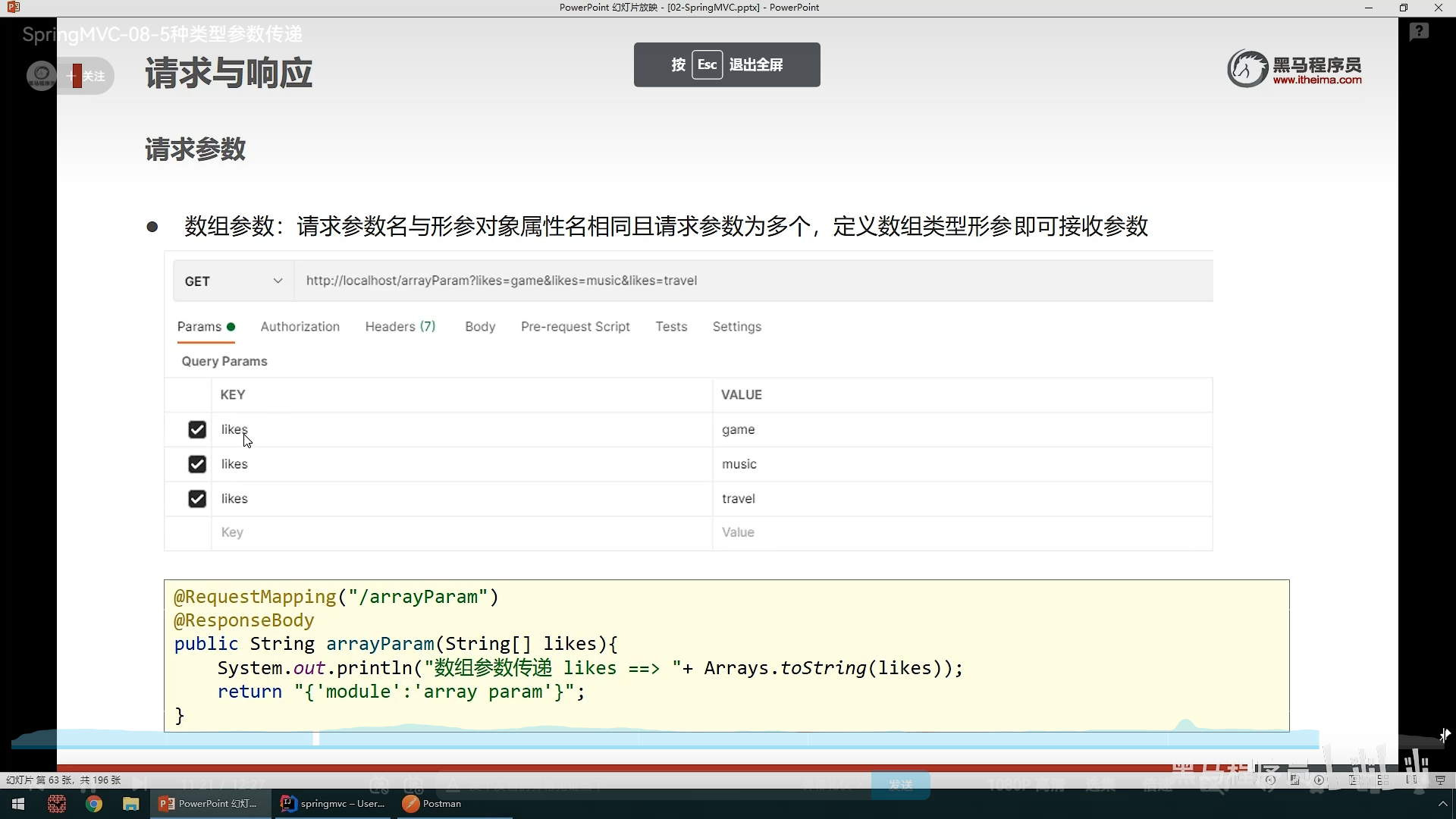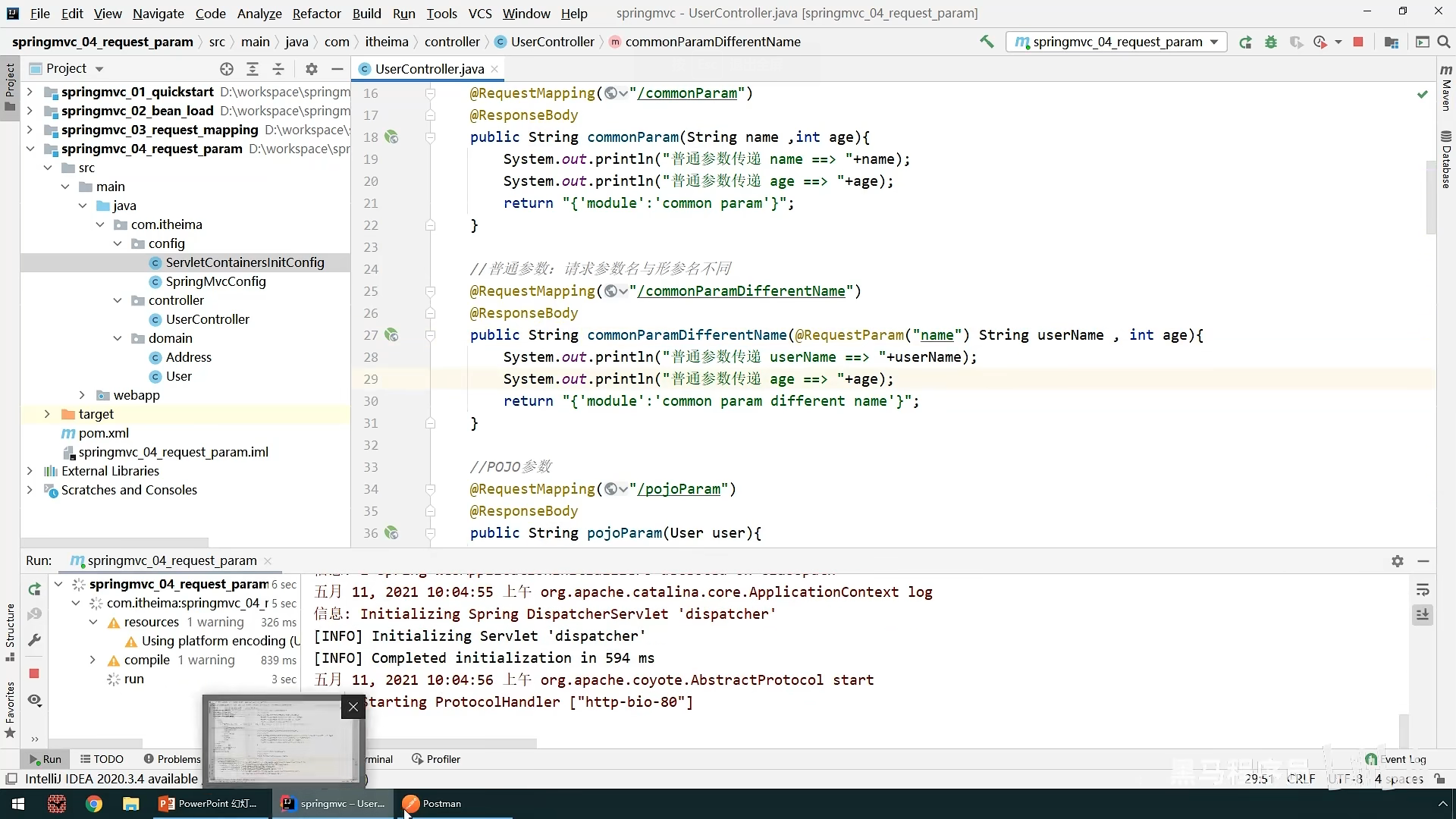 之后就是请求参数的传递,其中分为简单参数和json参数,后面大部分用的是json来传递参数,我们先说简单参数的传递,简单参数分为普通参数,数组参数,pojo(实体类)参数,集合参数,