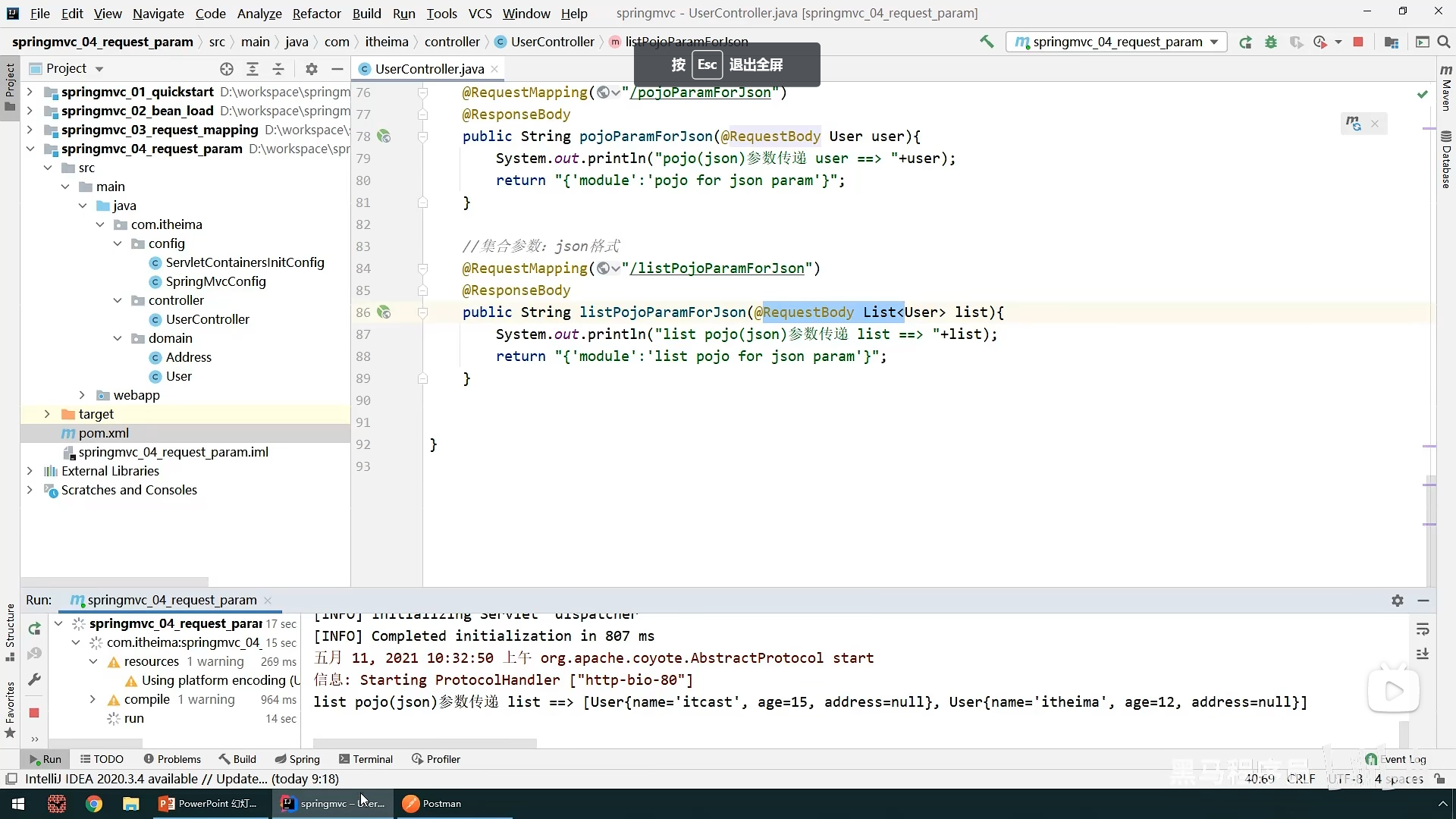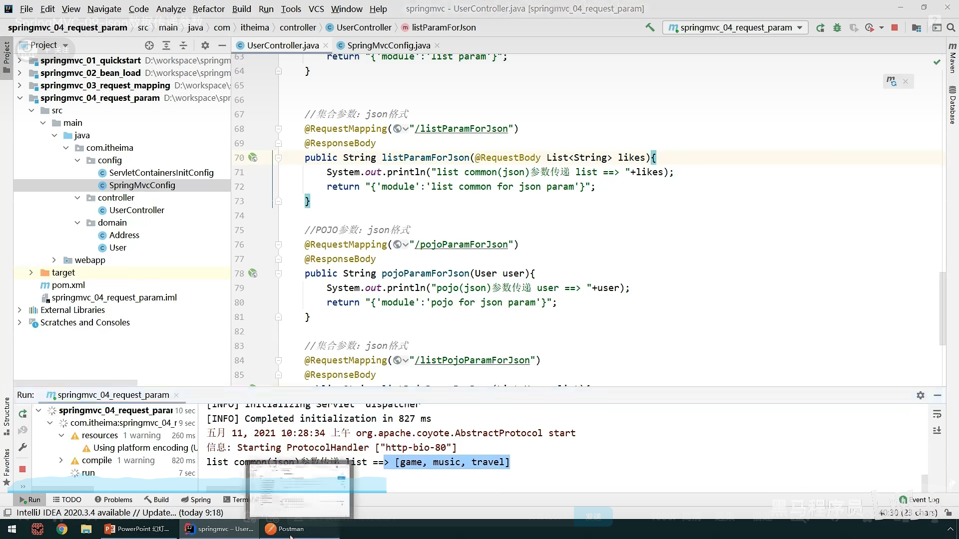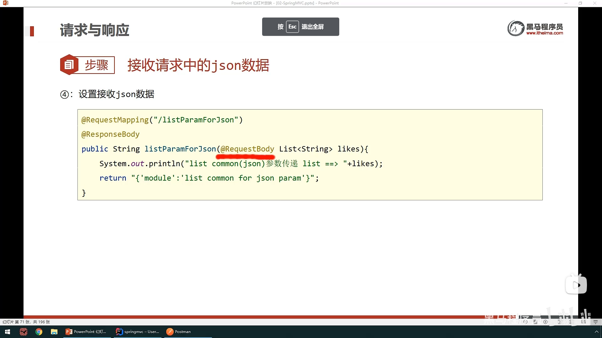 最后使用@RequestBody注解可以接受json请求参数