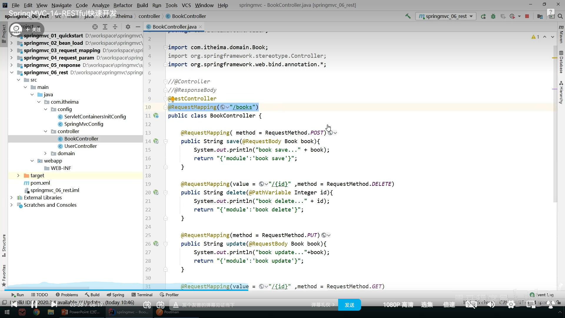 因为每个RequestMapping中都要写value=。。。,都要写Reponsbody,为了简化可以把它们写到前面,而且responsebody可以和Controller合体,写成RestController