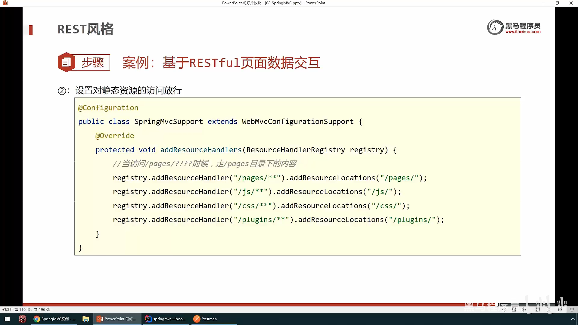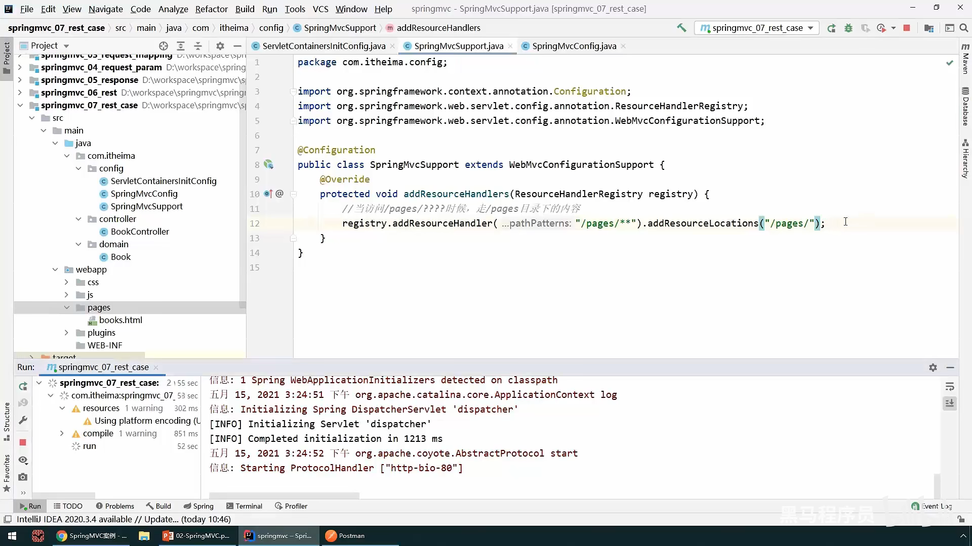 还有一个需要设置的是,给不是Spring中的资源放行,比如说一些html,css ,jsp文件的,因为我们在哪个初始化servlet类中的一个方法中设定了所有资源都给SpringMvc处理,