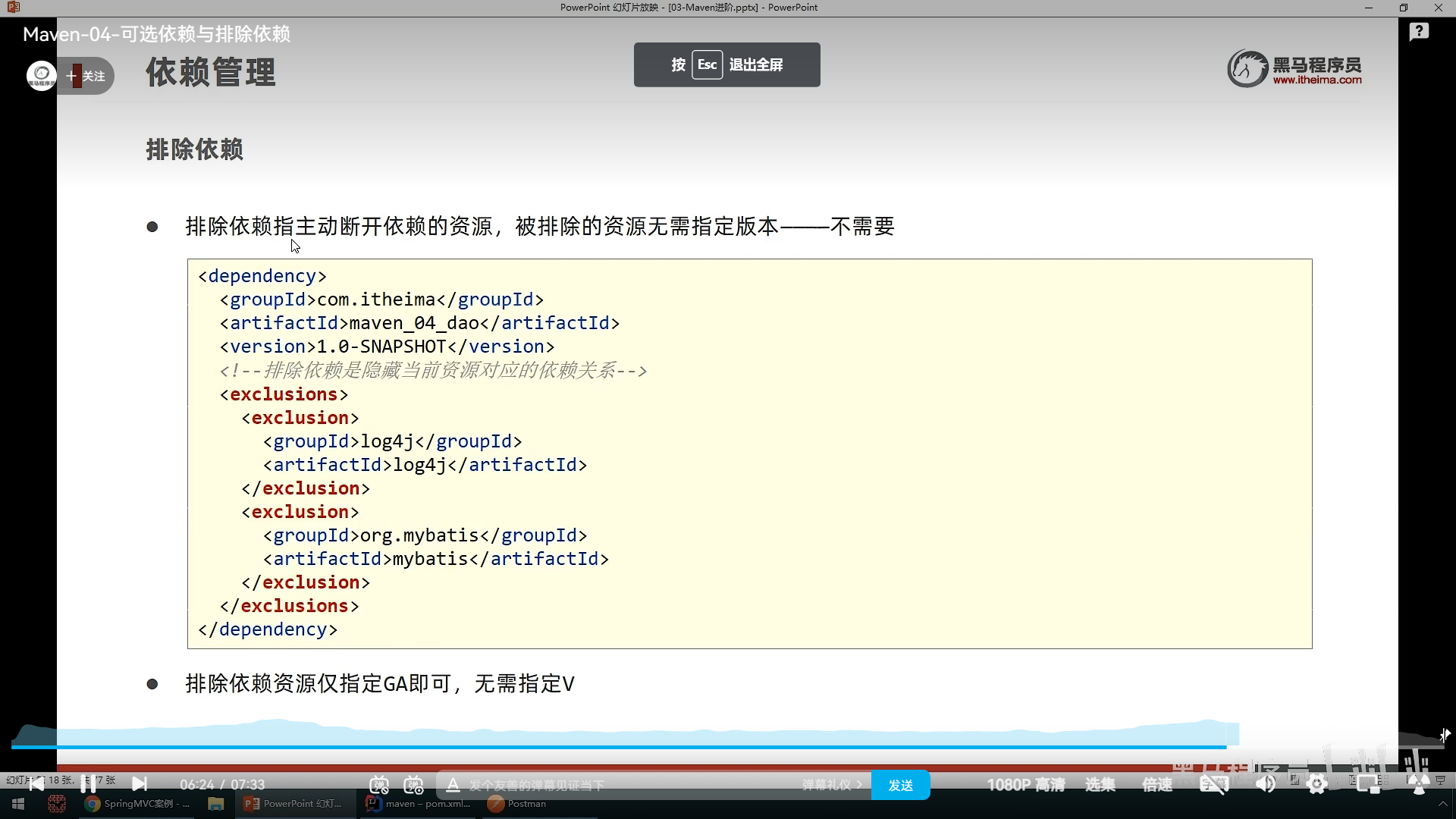 排除依赖:就是主动断开不需要的依赖,当导入的依赖中的间接依赖,与自己本身的有些依赖中冲突时,就可以通过<exclesction>标签来排除那个冲突的标签。