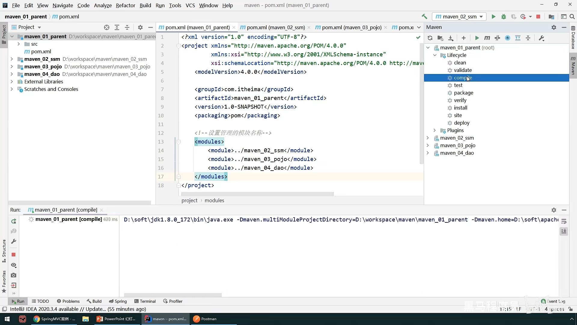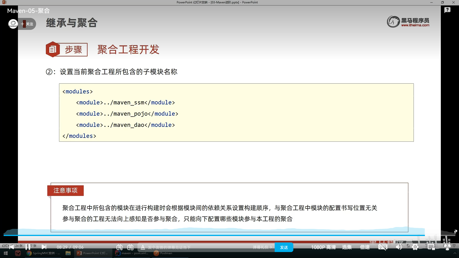 然后就是<modules>标签,来设置参与聚合的模块,然后这个模块之间的创建的创建顺序是根据,模块之间的依赖关系来的,和书写顺序无关。