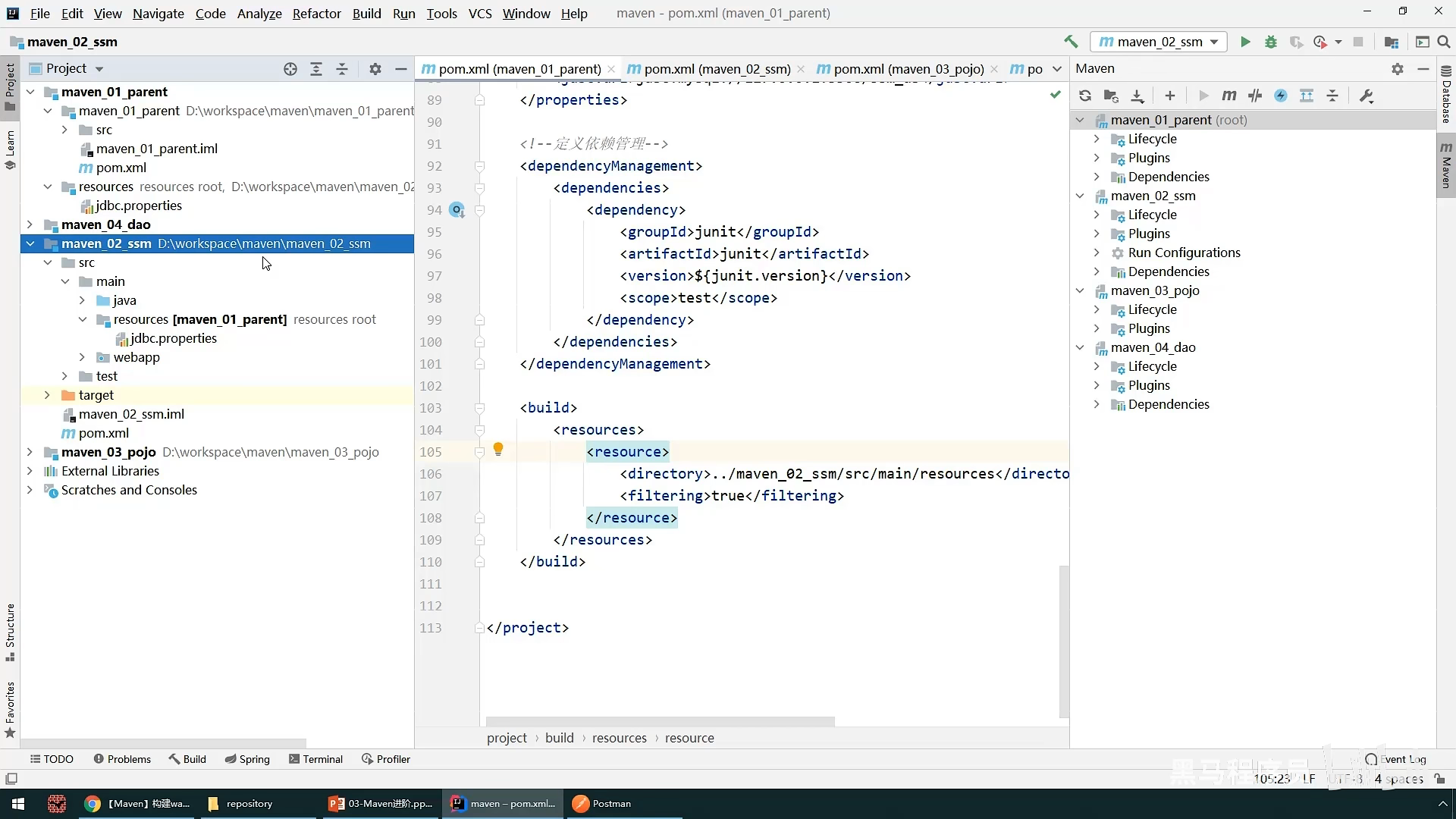 聚合:就是当我们开发时,分为几个模块开发,从而可以方便管理,这个maven_01就是用来管理其他模块的,