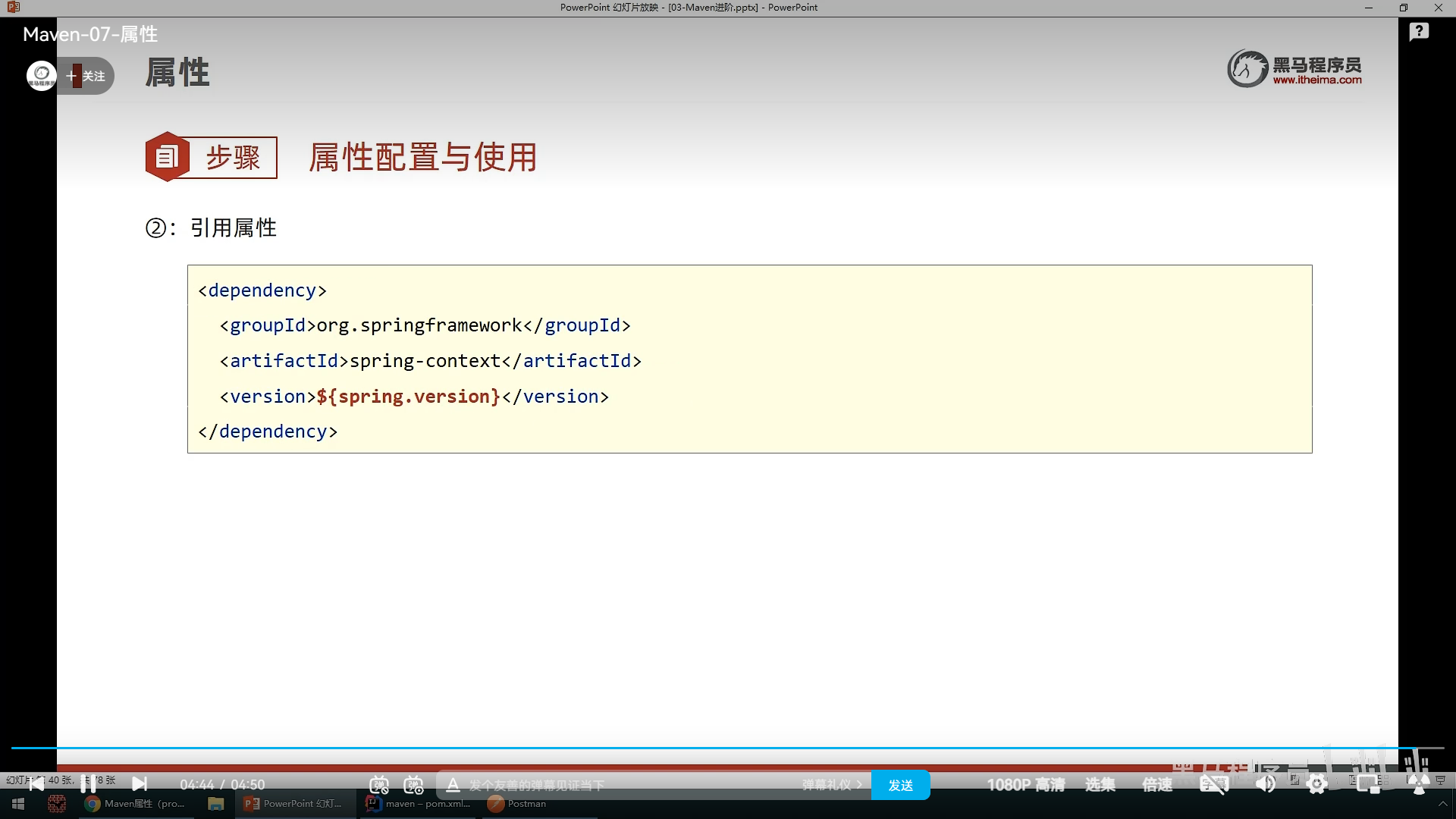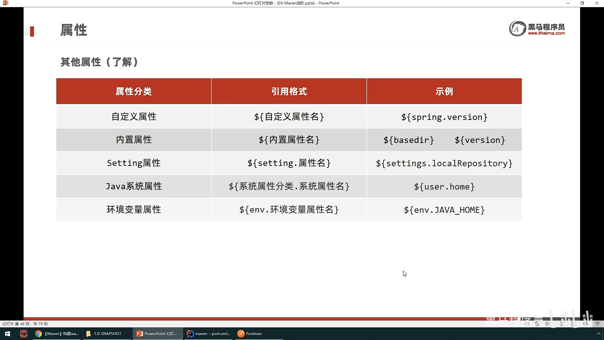 然后是属性,属性就是我们把那些类似版本号,写在<properties>中,用的时候就使用${属性的标签名}引用。
