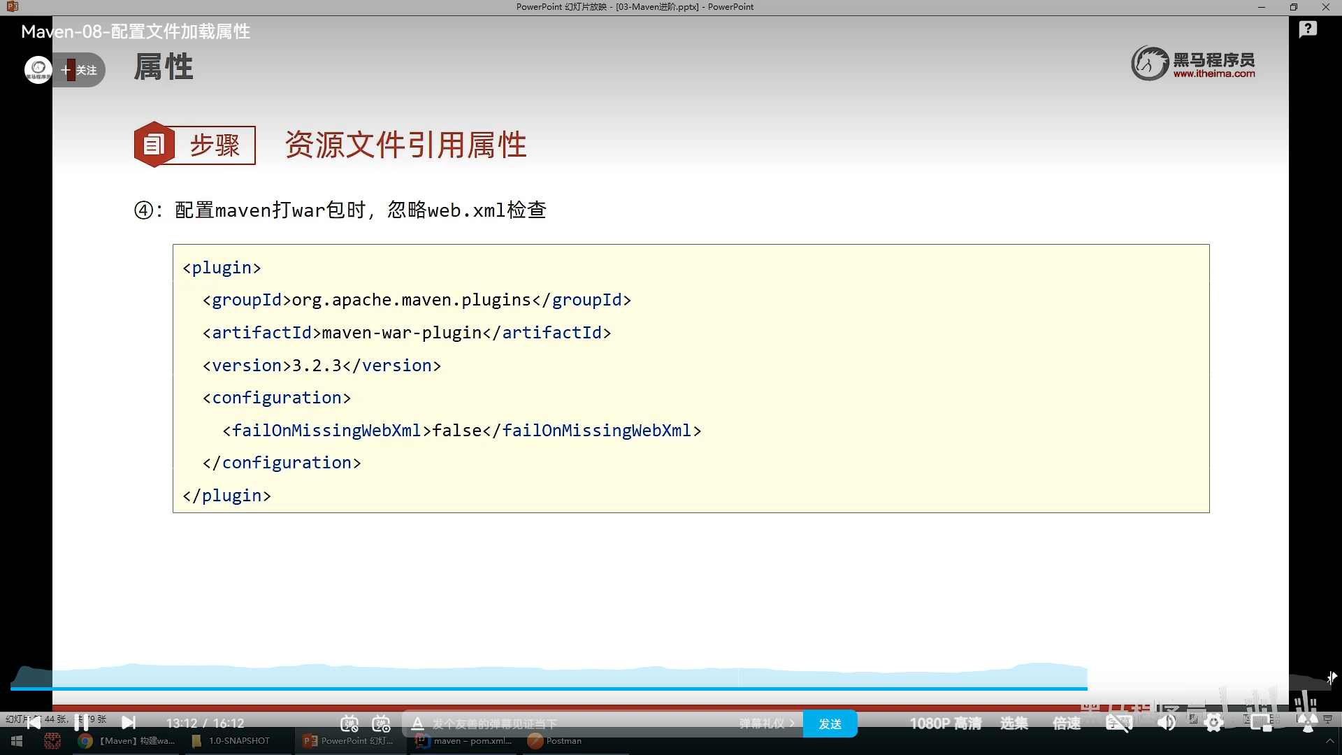 开启资源文件目录加载属性的过滤器,还有打包时忽略web.xml文件的检查