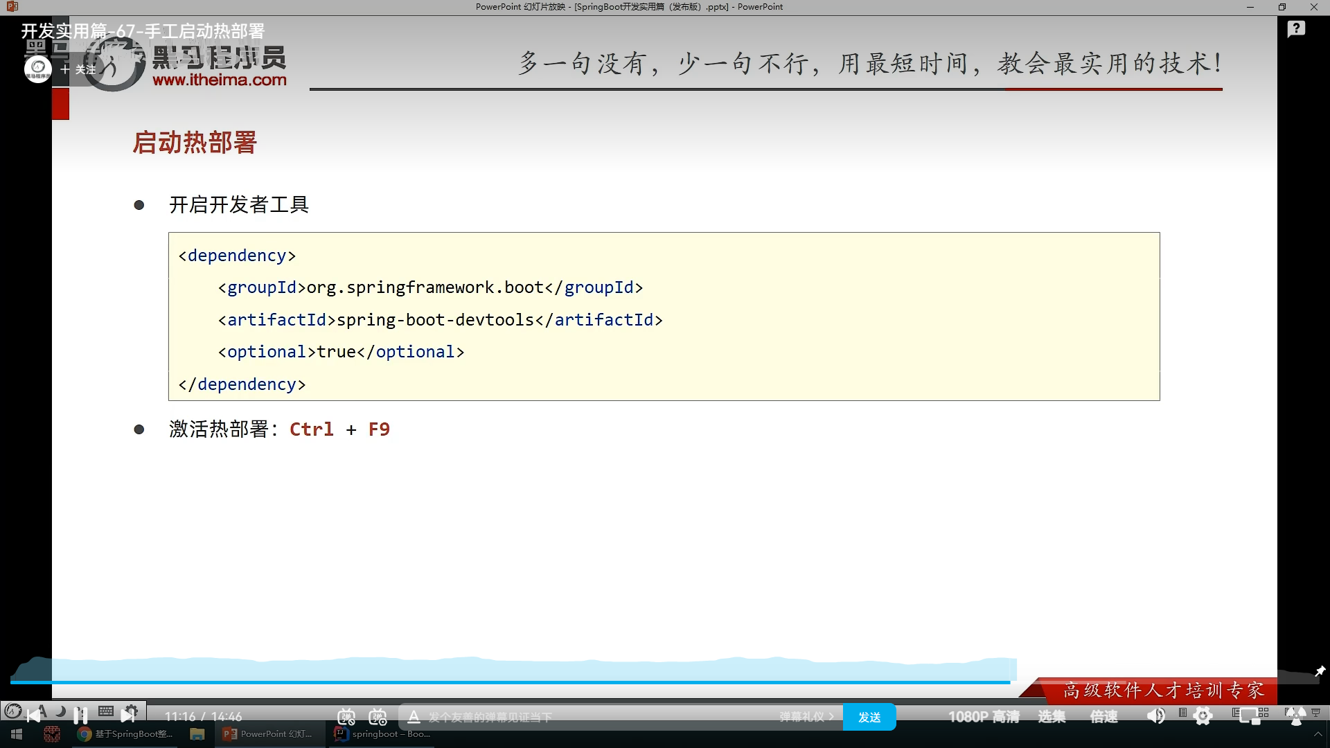 使用热部署,有两种方式,一种是手动(麻烦一点),一种是自动的,首先需要导入热部署的jar依赖,然后手动的话需要在改完代码后,build(或者使用快捷键ctrl+F9):