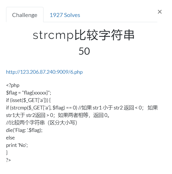 <?php $flag = "xxx"; if (isset ($_GET['password'])){ if (ereg ("^[a-zA-Z0-9]+$", $_GET['password']) === FALSE){ echo 'You password must be alphanumeric'; }else if (strlen($_GET['password']) < 8 && $_GET['password'] > 9999999){ if (strpos ($_GET['password'], '-') !== FALSE) { //strpos — 查找字符串首次出现的位置 die('Flag: ' . $flag); }else{ echo('- have not been found'); } }else{echo 'Invalid password'; } } ?>