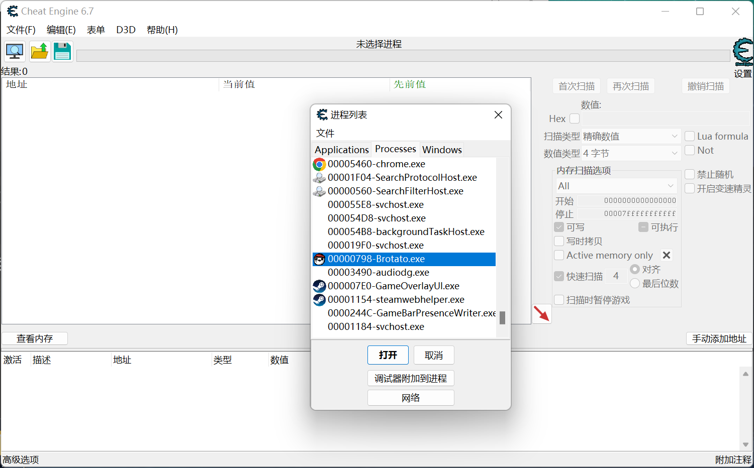 - 首先进入游戏后,在ce中选择土豆兄弟的游戏进程