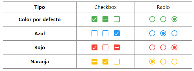 < input class="blue" type="checkbox"> < input class="blue" type="radio" name="group4"> < input class="red" type="checkbox"> < input class="red" type="radio" name="group4"> < input class="orange" type="checkbox"> < input class="orange" type="radio" name="group4">