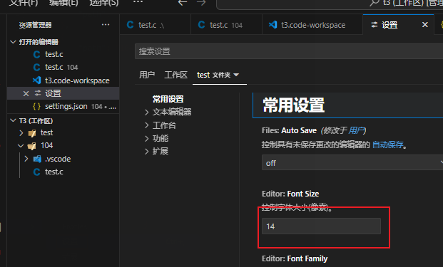 后面就可以通过首选项--》设置--》工作区/文件夹进行设置