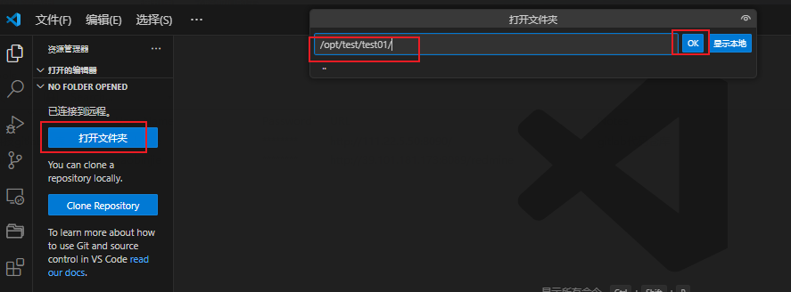 1.先打开一个linux下的文件夹,此时只是通过ssh打开文件夹。