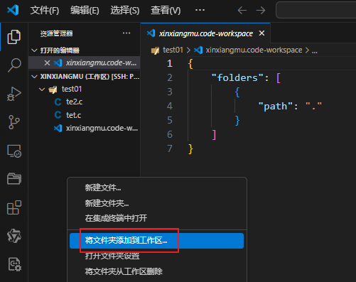 vscode 通过ssh链接linux服务器设置工作区: