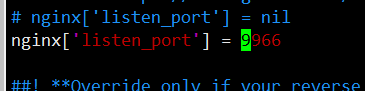 # 让gitlab的内置nginx监听9002端口 nginx['listen_port'] = 9002 # 设置gitlab的访问路径(是通过外部nginx反向代理访问的) external_url 'http://域名/git'