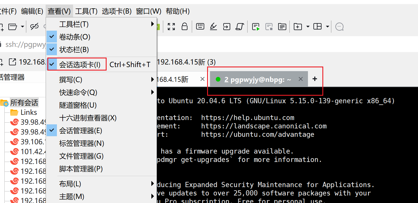 新安装的xshell没有会话选项卡,打开会话选项卡方式:
