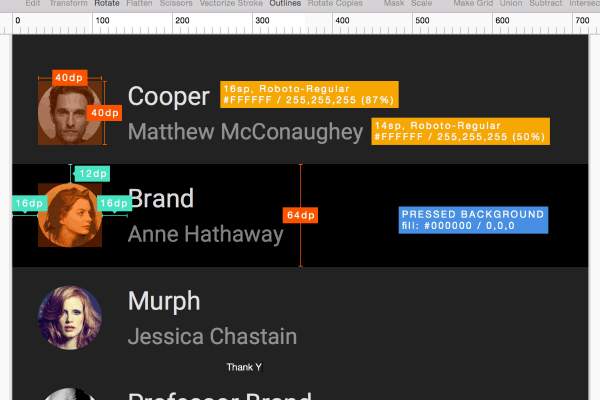 比如在sketch里定义好的文字颜色样式,经过measure导出后就看不到样式名了,不利于程序员哥哥统一管理,也不方便改 >..<。标注完图还是得设计师2x 3x hdpi xhdpi的切,虽然也有自动生成切图的插件,但貌似有问题,经常切出来的图不对。设计稿要修改,标注还得自己手动更新。。。