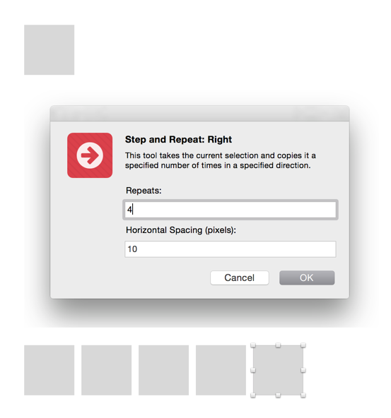 - 快速复制一个选定组件到自己指定的方向,指定间距,指定复制个数。