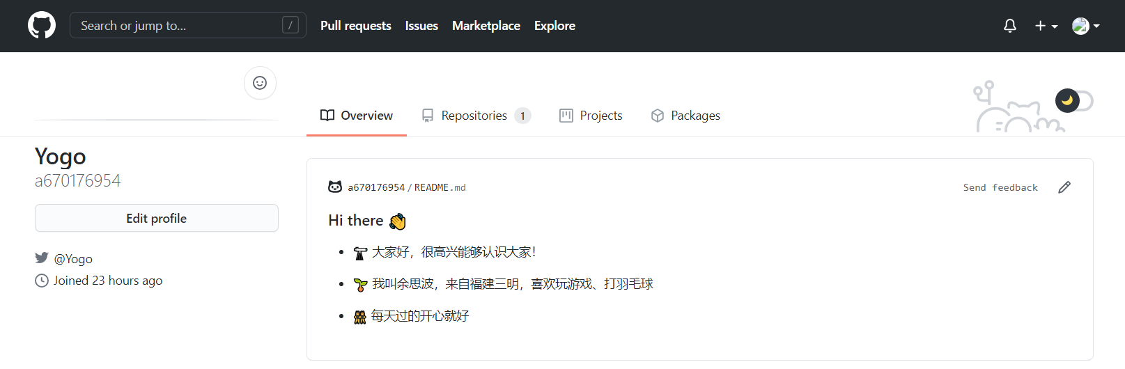 | 这个作业的目标 | 介绍自己,熟悉 GitHub 与 Git;了解 markdown 的编写格式 |