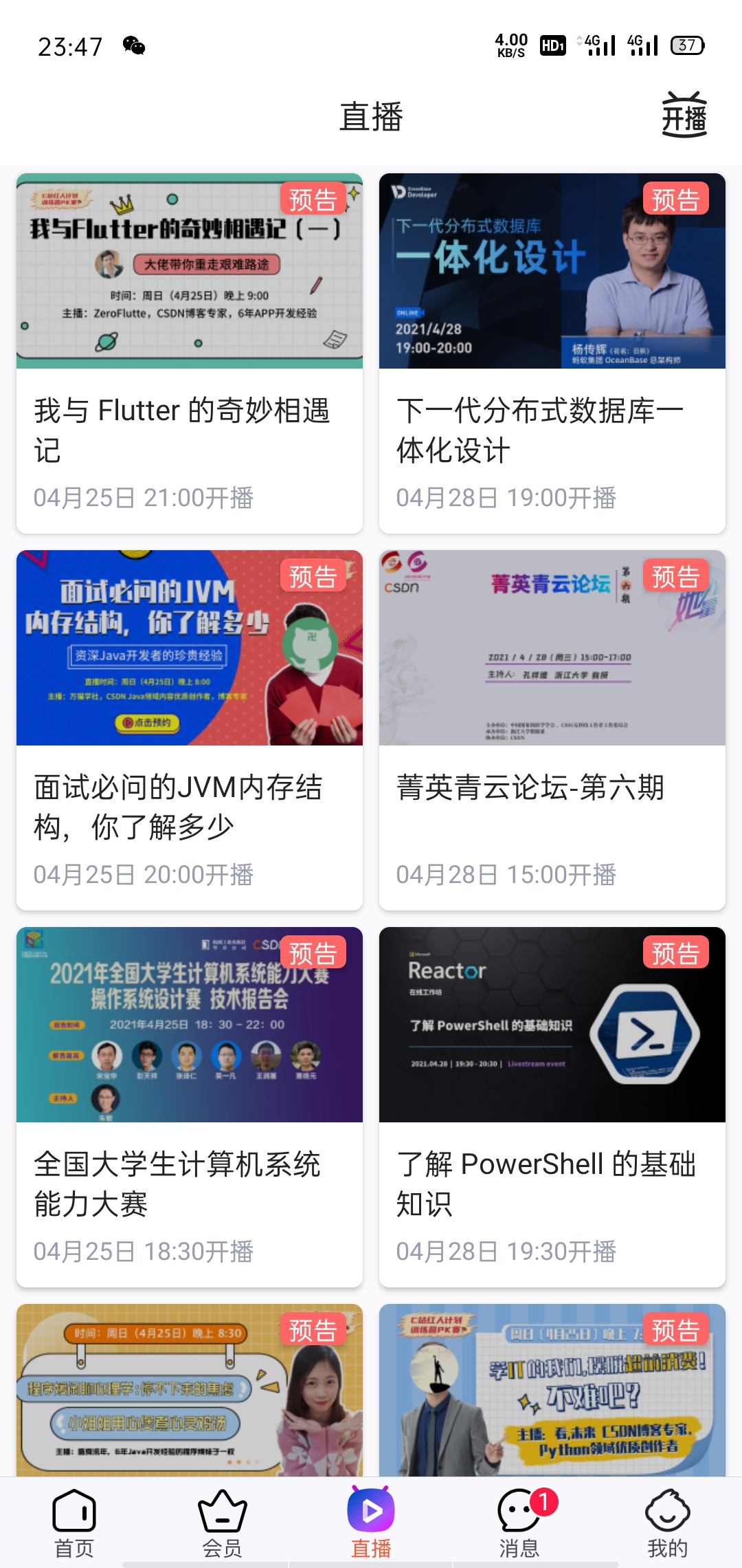 点击直播进入直播界面,可以看到各种各样的的直播,正在进行的、回访的都有。