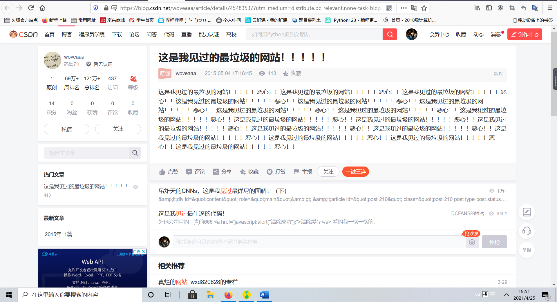 BUG1:审核门槛比较低,许多低质量的文章却可以过审,很多遍文章出现了粗俗用词,文章的重复率也很高。