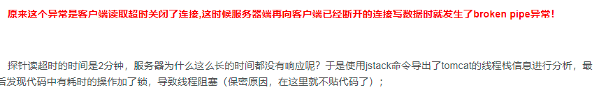 3.还有最后一个问题就是,后台会经常报“断开的管道”这个异常,实在是不经常见到的错误,所以在网上搜了一些的答案