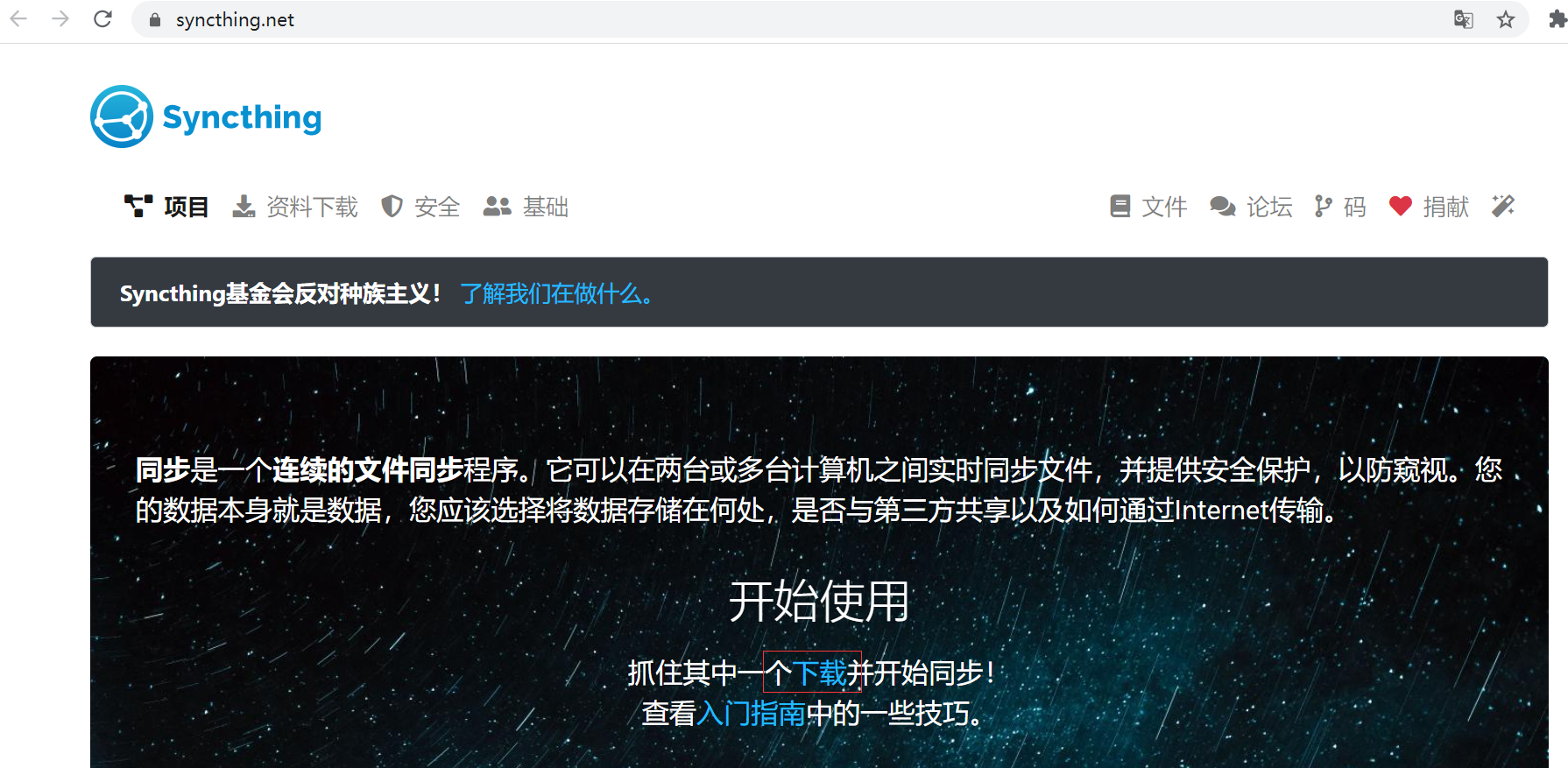 Syncthing官网:https://syncthing.net/