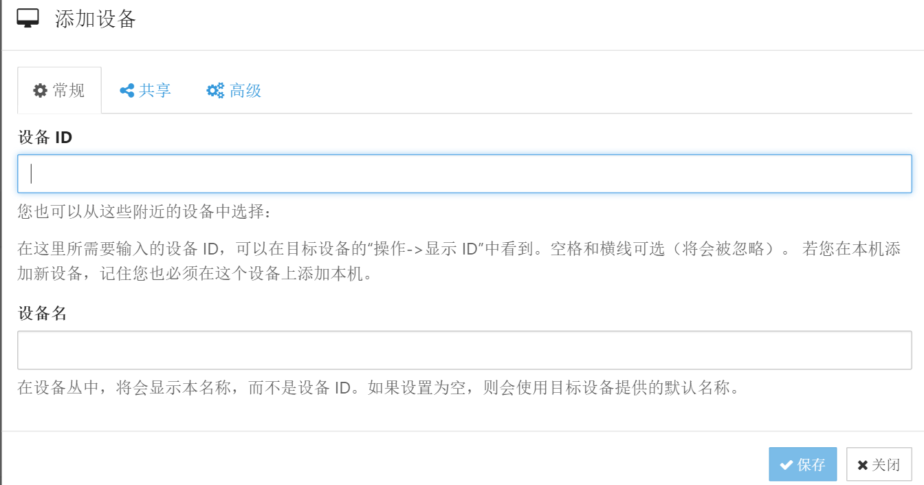 共享-可以选择共享给哪些目标设备,此时也可以不选择,等创建好目标设备后再进行调整。