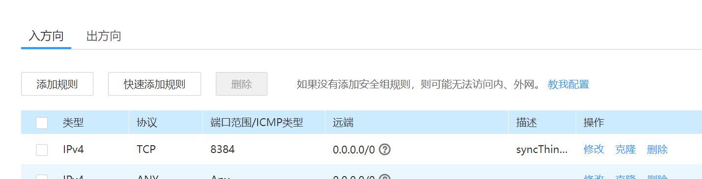 syncthing默认监听8384端口,我们需要在iptables放行这个端口,依次输入下面的命令 (此步骤也可以省略,下面配置安全组的时候也会自动做这步)
