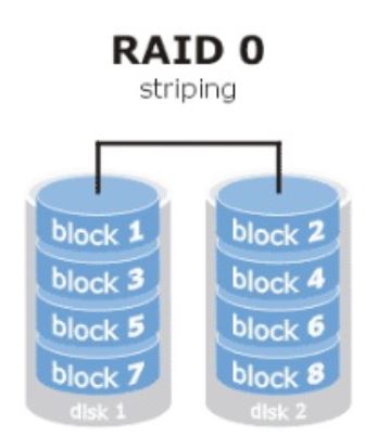 RAID 0(能够有效地提升硬盘数据的吞吐速度,但是不具备数据备份和错误修复能力):把多块物理硬盘设备(至少两块)通过硬件或软件的方式串联在一起,组成一个大的卷组,并将数据依次写入到各个物理硬盘中。数据被分别写入到不同的硬盘设备中,即disk1和disk2硬盘设备会分别保存数据资料,实现提升读取、写入速度的效果。若任意一块硬盘发生故障将导致整个系统的数据都受到破坏。
