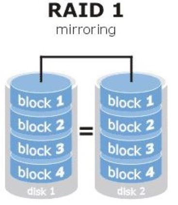 RAID 1(没有提高读写速度,硬盘空间真实可用率减半,数据安全性提高):把两块以上的硬盘设备进行绑定,在写入数据时,是将数据同时写入到多块硬盘设备上(可以将其视为数据的镜像或备份,增大系统负载)。当其中某一块硬盘发生故障后,一般会立即自动以热交换的方式来恢复数据的正常使用。