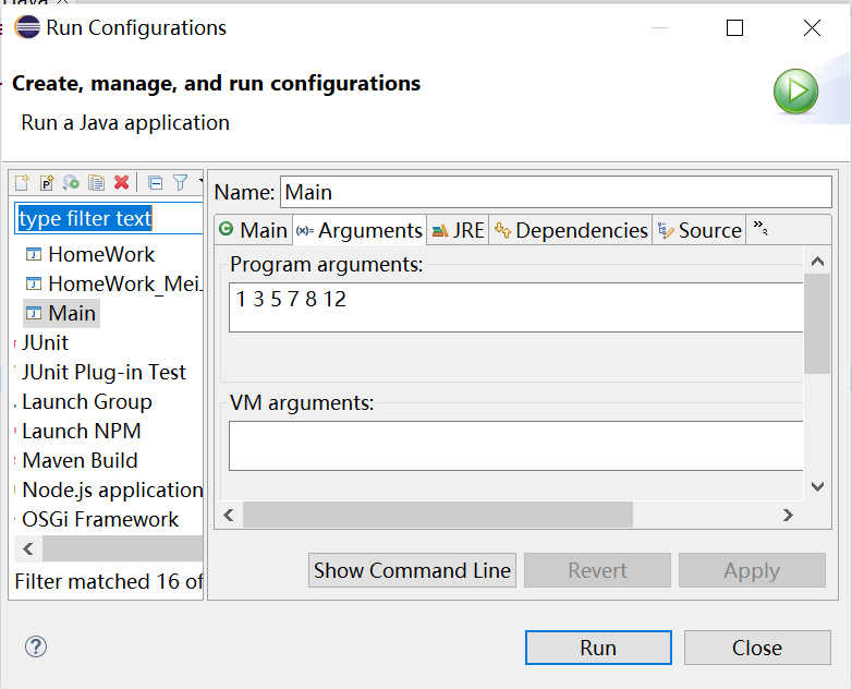 配置Run Configurations,在Eclipse中实现控制台参数输入。