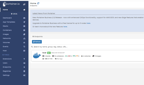 登录后选择Local进行Connect,即可查看docker的信息,包含镜像、容器等