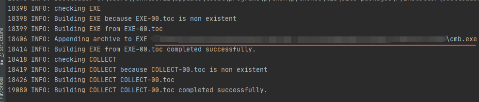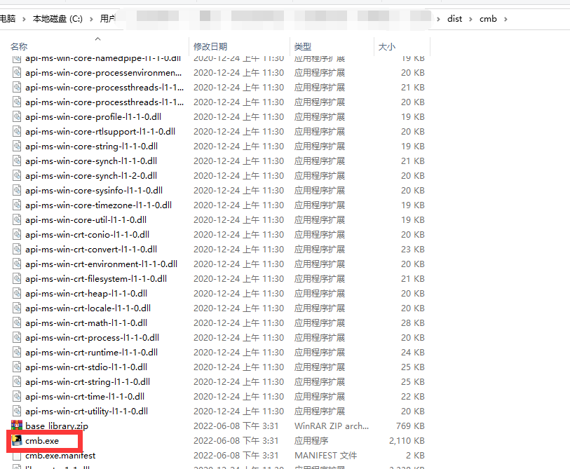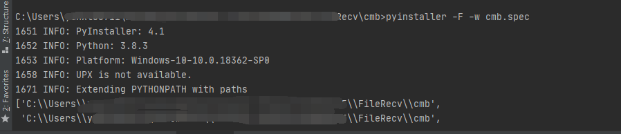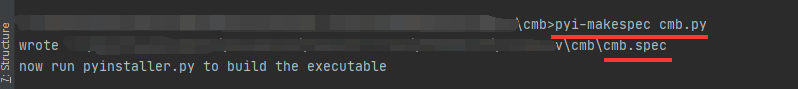 c.在控制台执行命令:pyinstaller -F -w cmb.spec 即可生成exe文件。