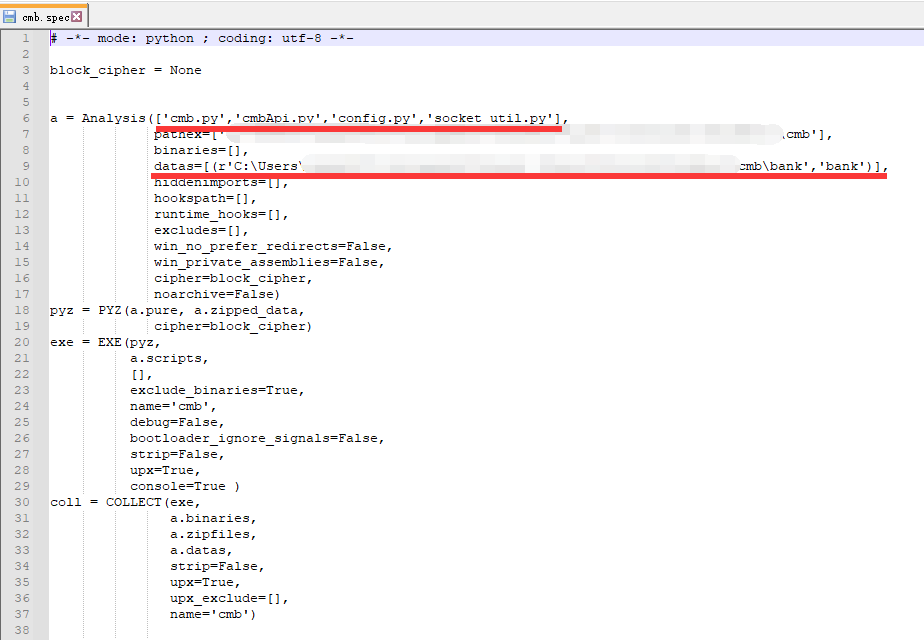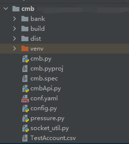 如下图所示的py文件:cmb.py、cmbApi.py、config.py、socket_util.py需要打包成一个exe可执行程序,其中cmb.py为主程序