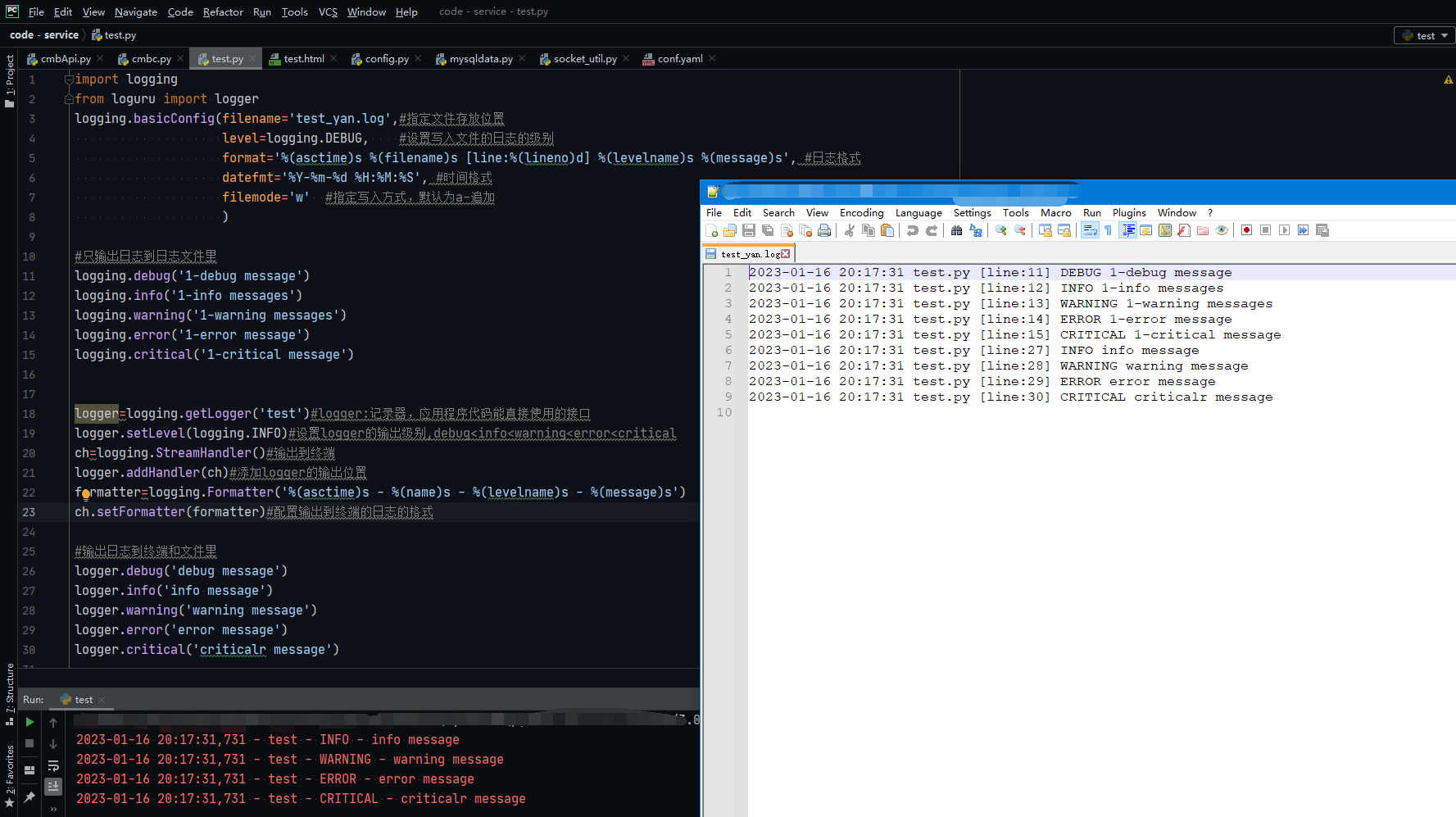logging.basicConfig(filename='test_yan.log',#指定文件存放位置