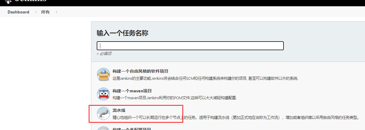 3、新建一个【流水线】工程用来写操作mysql数据库的语句